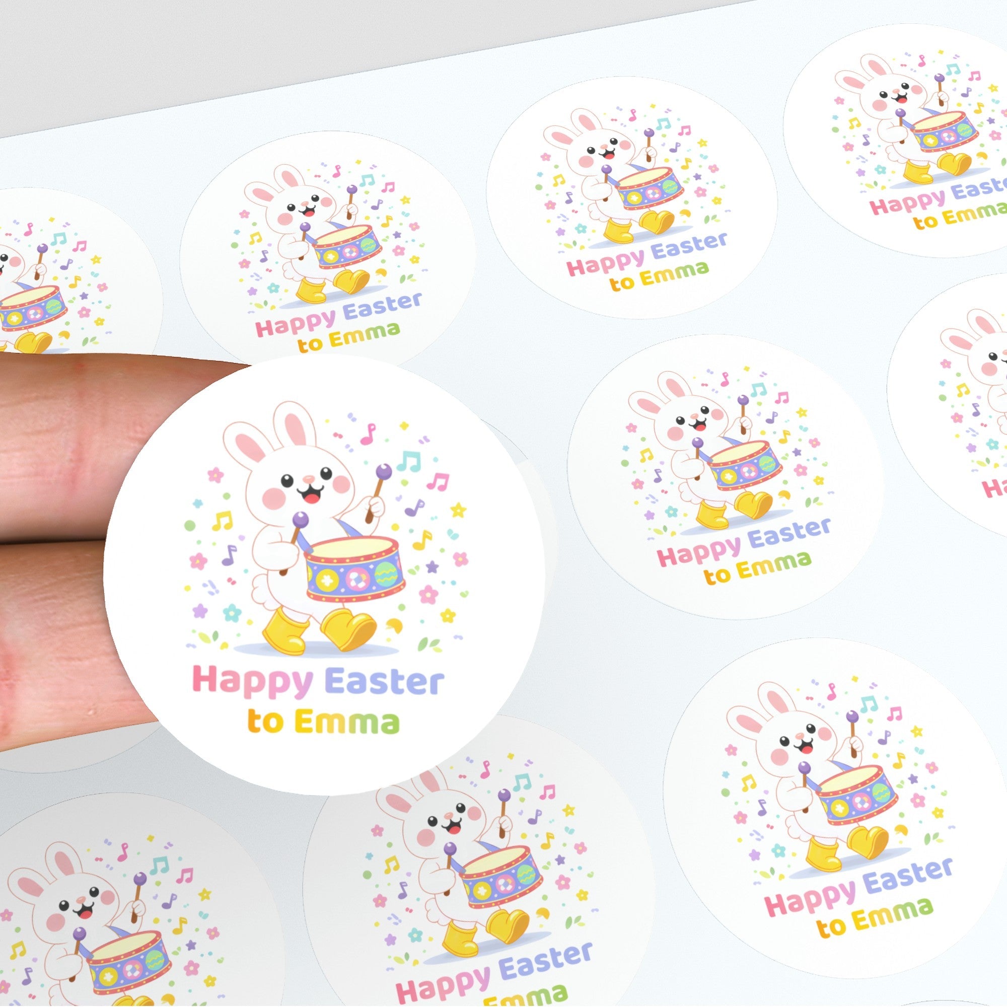 Personalised Easter Bunny Drum Stickers | Musical Easter Stickers for Kids | Custom Name Labels