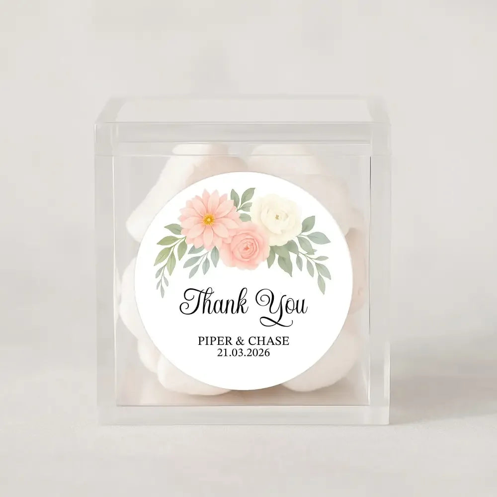 Personalised Floral Thank You Wedding Stickers | Blush Dahlia Design