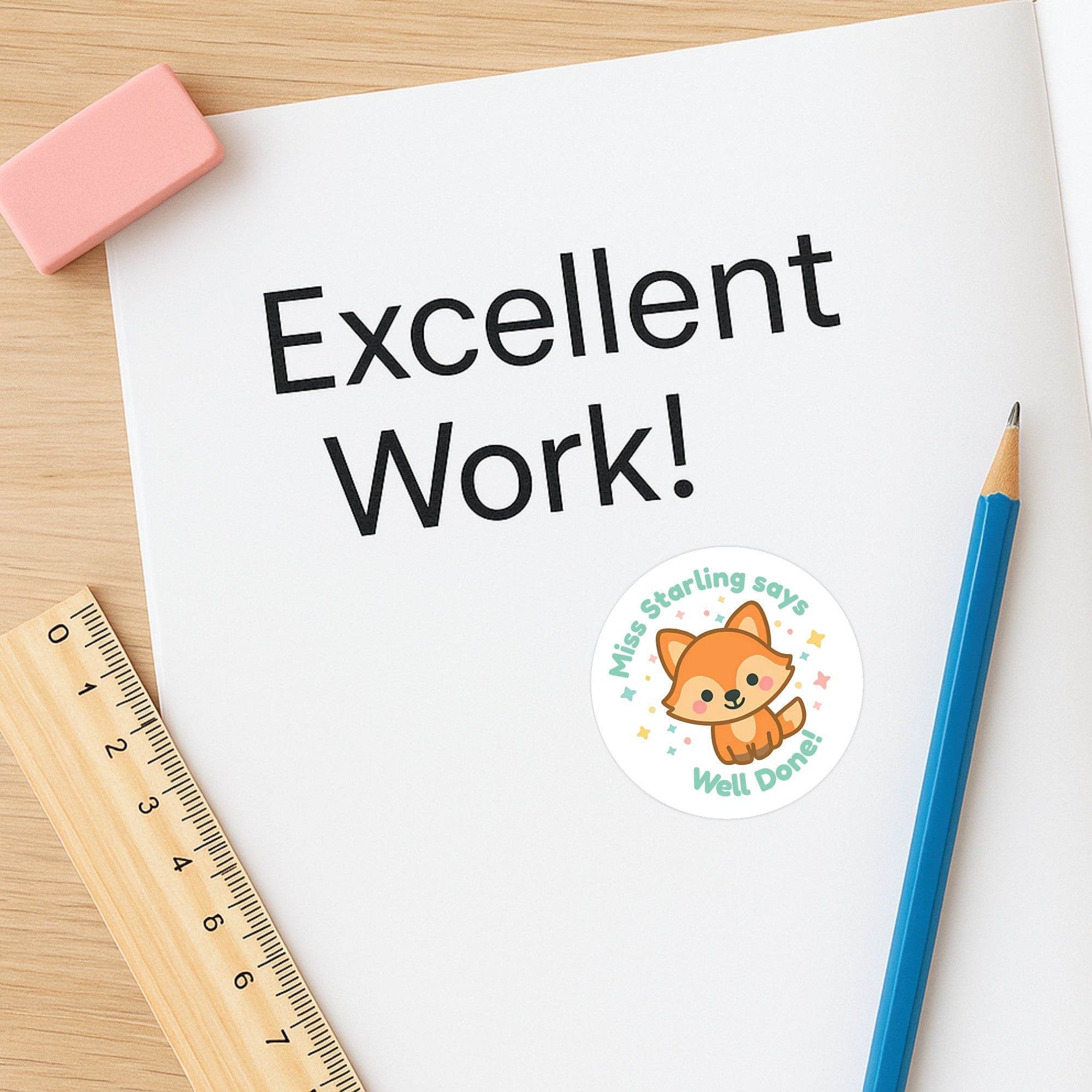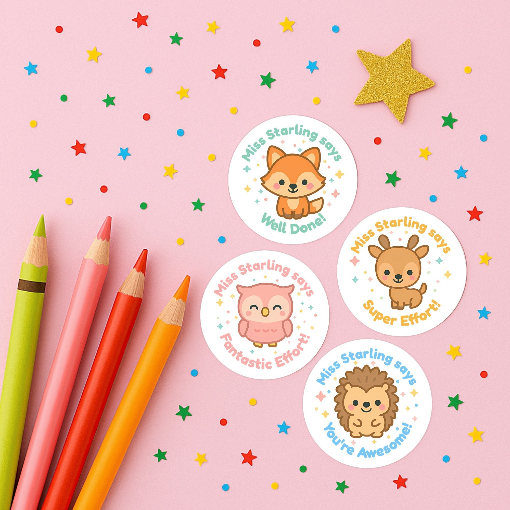 Each sticker includes your personalised name (e.g. “Miss Starling says”), adding a friendly and familiar touch that makes every reward feel extra special.