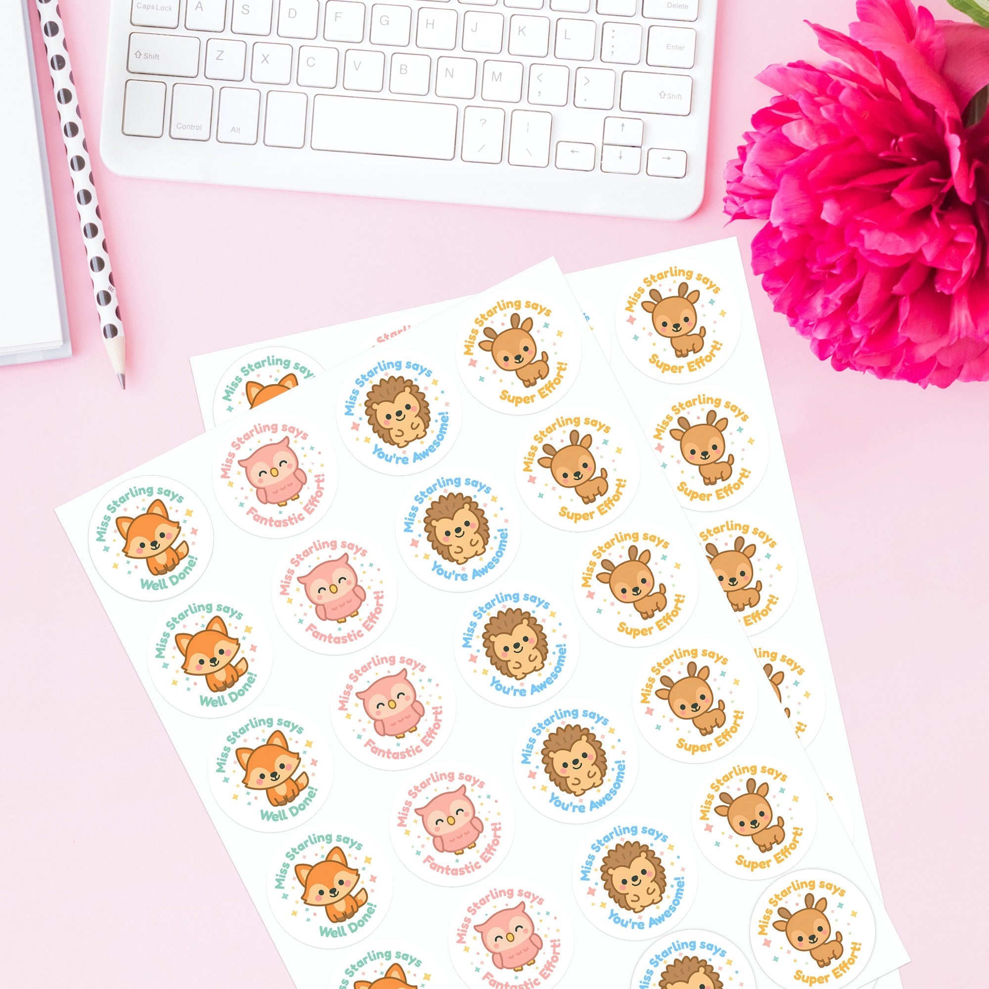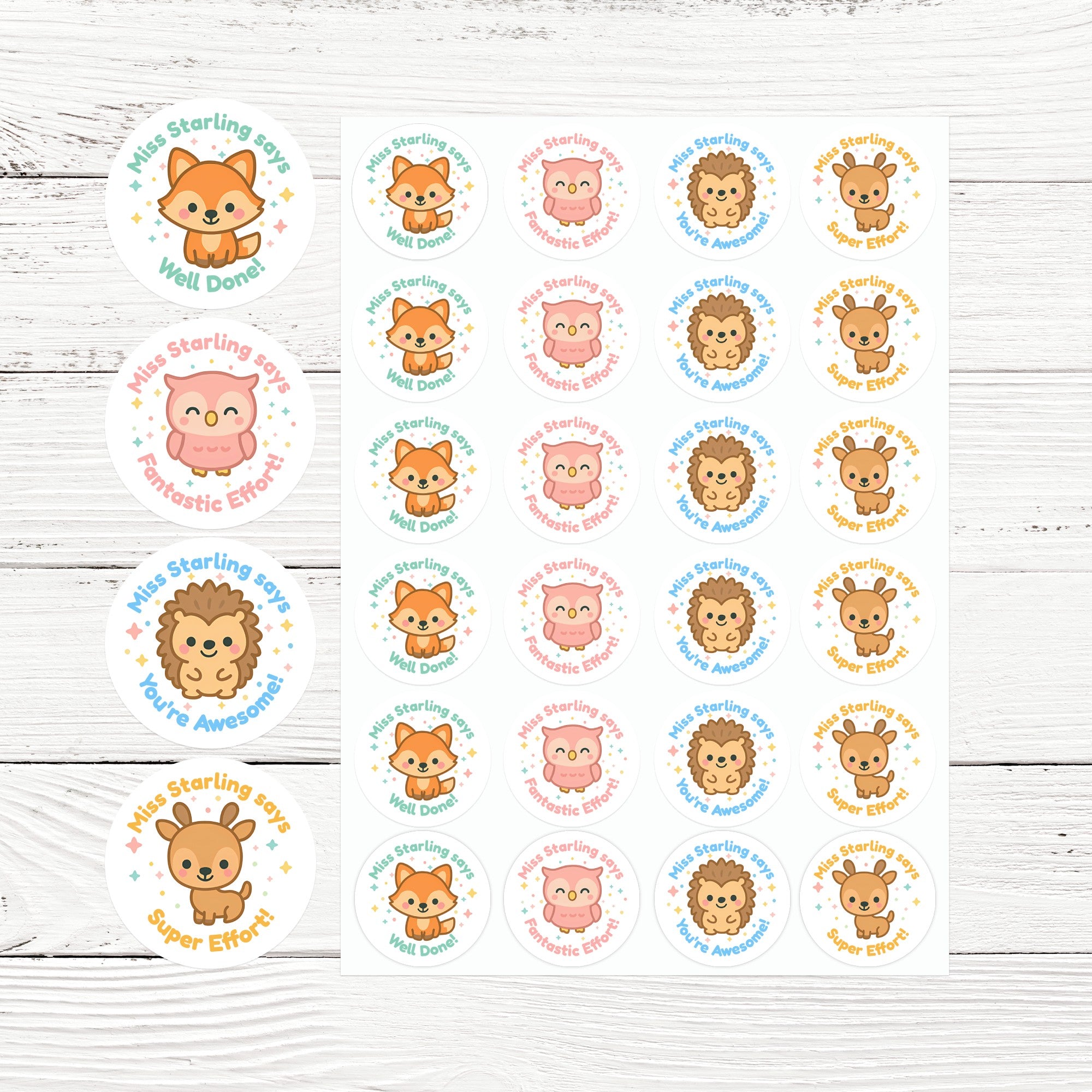 Make learning fun with these adorable personalised forest animal teacher reward stickers! Featuring bright, kawaii-style woodland friends, a sweet fox, gentle deer, happy owl and cheerful hedgehog, with encouraging phrases like “Well Done!”, “Super Effort!”, “Fantastic Effort!” and “You’re Awesome!”, these stickers are perfect for little nature lovers and add a warm, magical touch to every achievement.