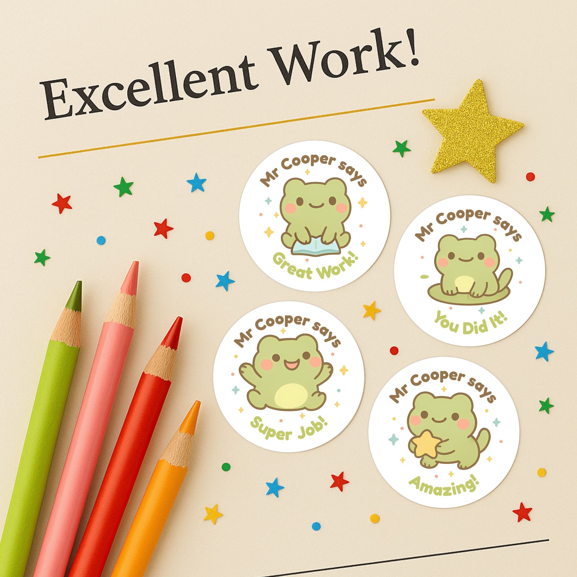 Personalised Frog Teacher Reward Stickers – Cute Classroom Praise Labels