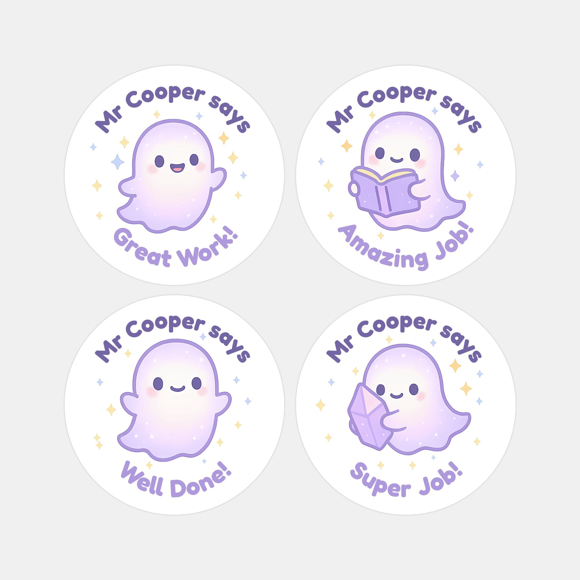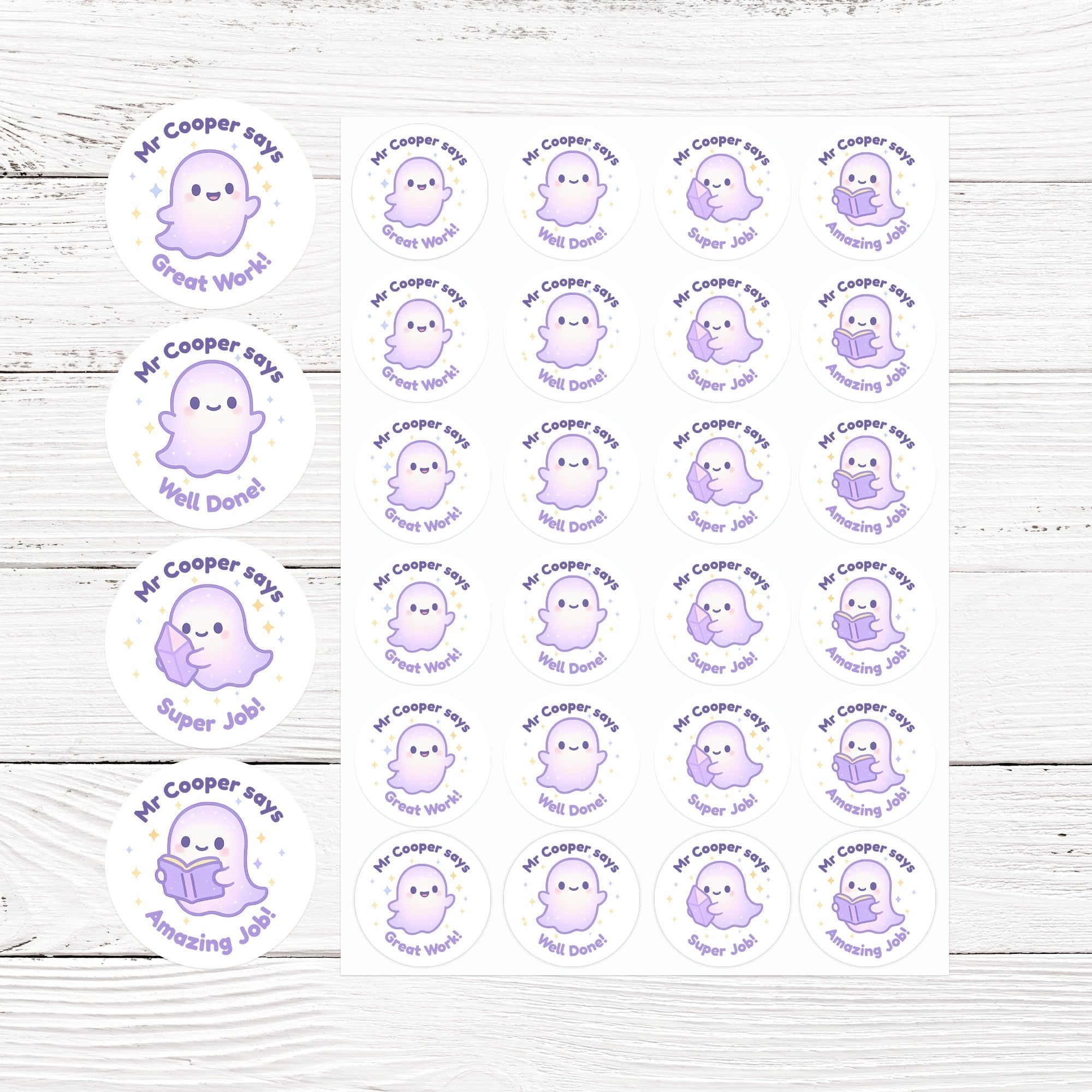 Personalised Ghost Teacher Reward Stickers – Custom Name Classroom Praise Stickers