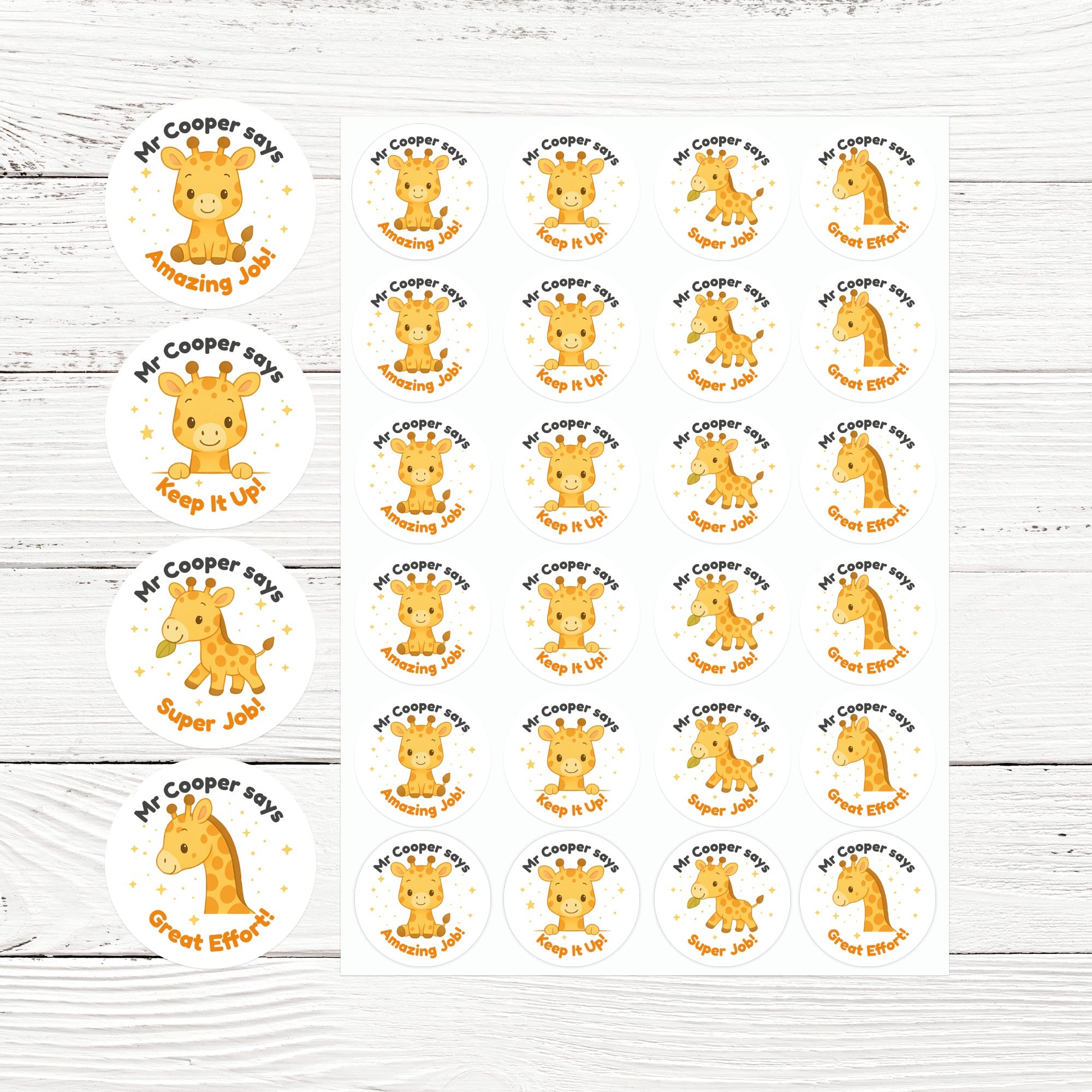 Personalised Giraffe Reward Stickers – Cute Teacher Stickers for Classroom Praise