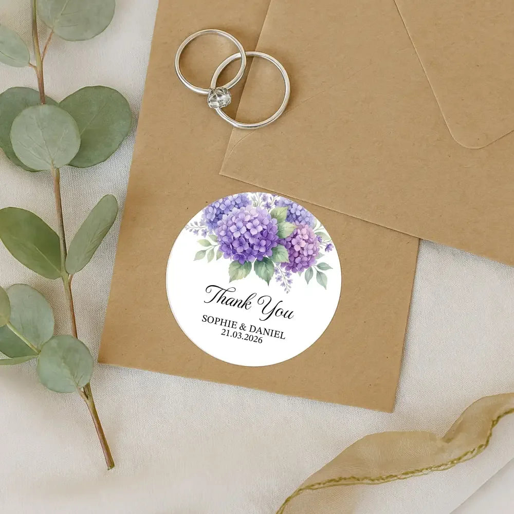 Personalised Hydrangea Wedding Thank You Stickers | Purple Floral Favour Labels