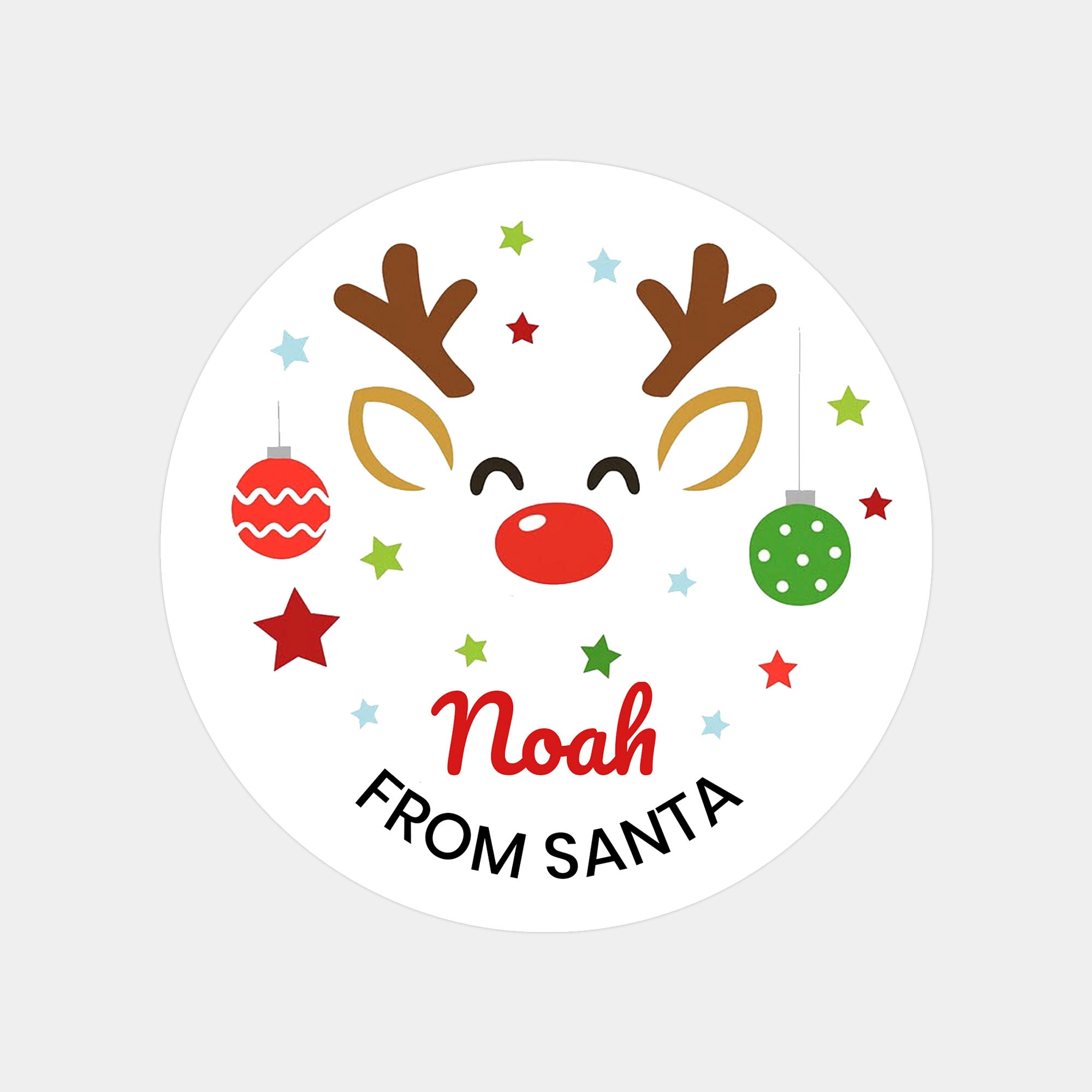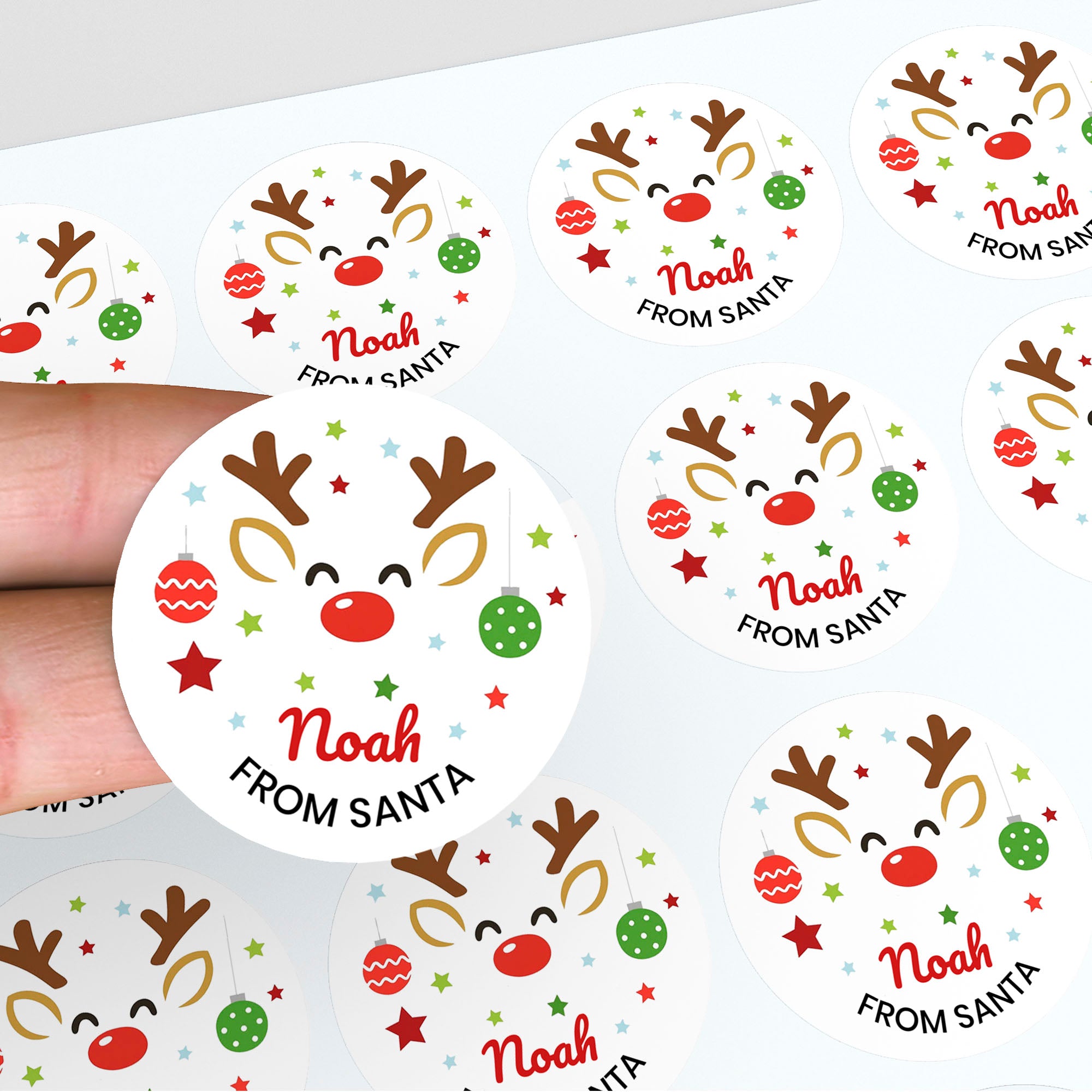 Personalised Kids Christmas Sticker Labels Rudolph Reindeer
