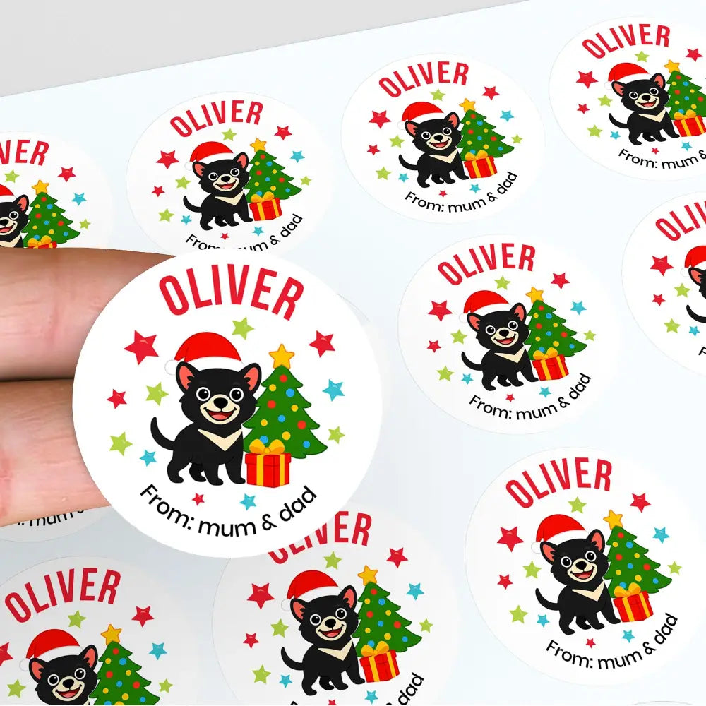 Personalised Kids Christmas Sticker Labels Tassie Devil From Mum And Dad