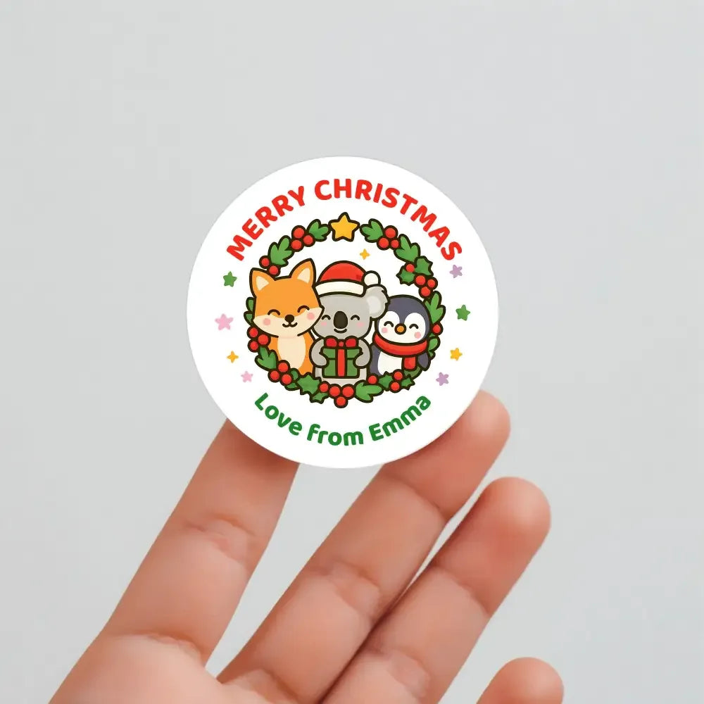 Personalised Kids Christmas Sticker Labels – Wreath Animals