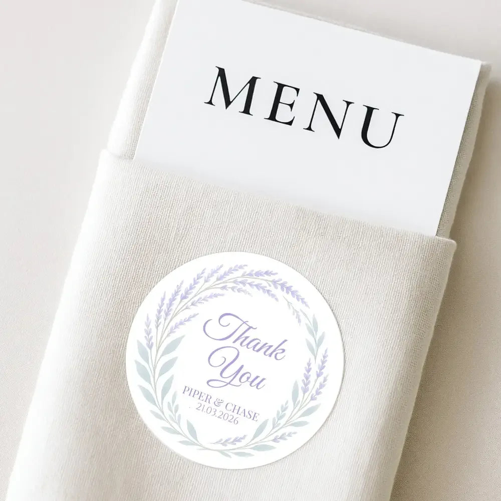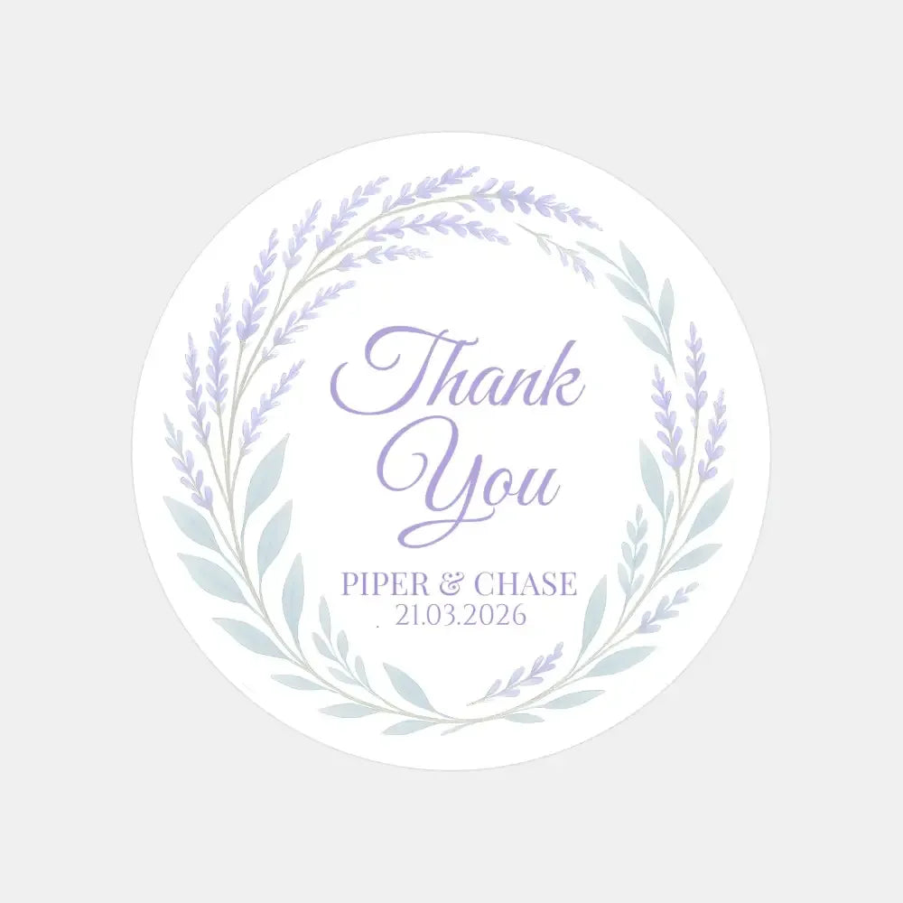 Personalised Lavender Botanical Wedding Thank You Stickers – Custom Favour Labels