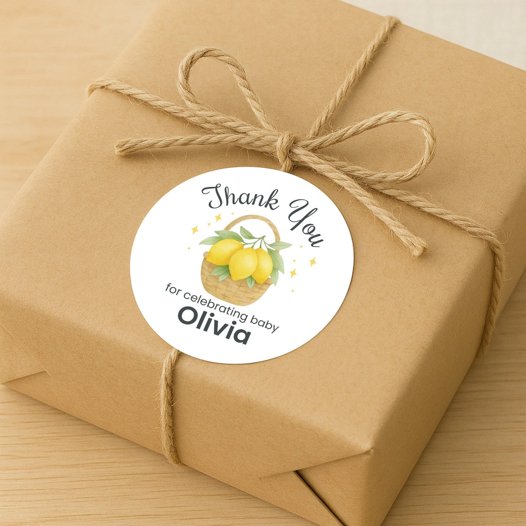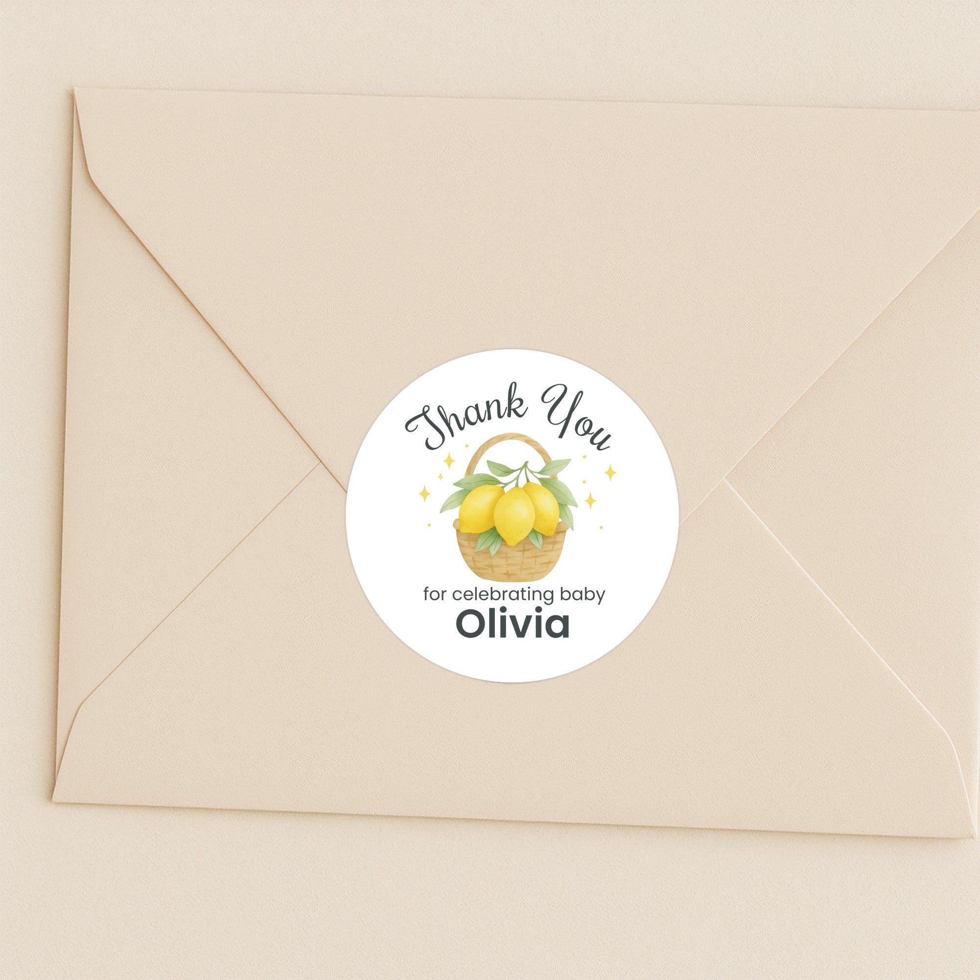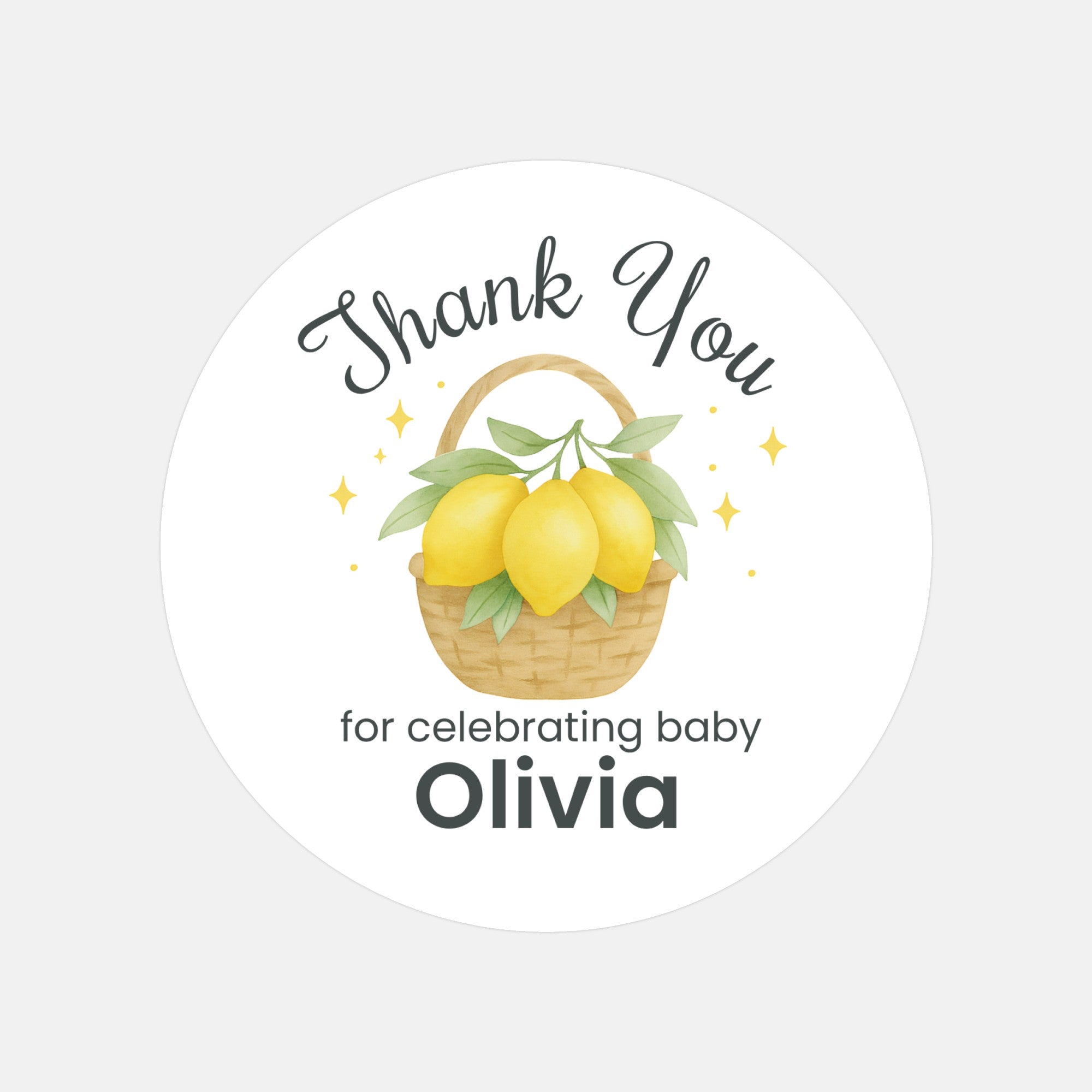 Personalised Lemon Basket Baby Shower Thank You Stickers – Watercolour Citrus Favour Labels