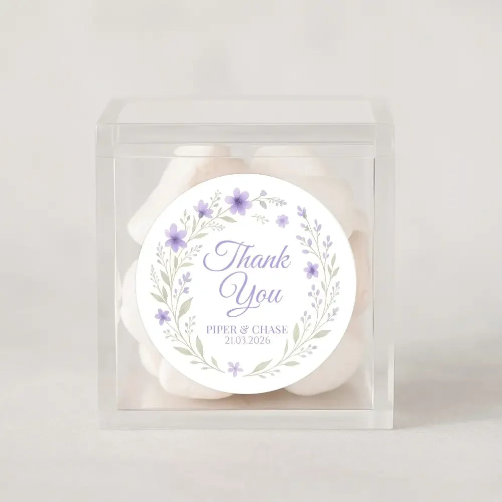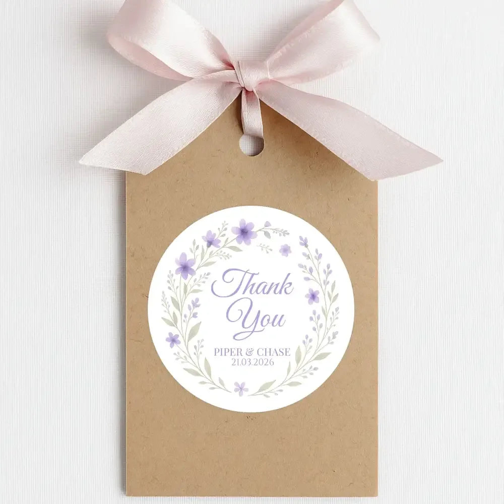 Personalised Lilac Floral Wreath Wedding Thank You Stickers – Custom Favour Labels