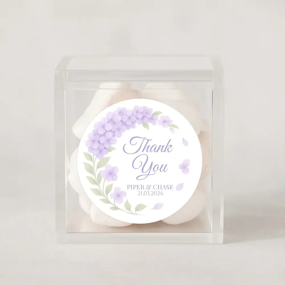 Personalised Lilac Hydrangea Wedding Thank You Stickers – Custom Floral Favour Labels