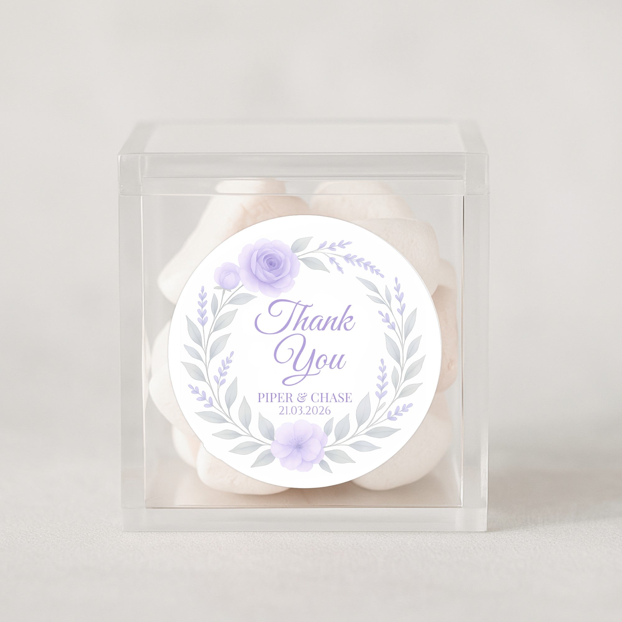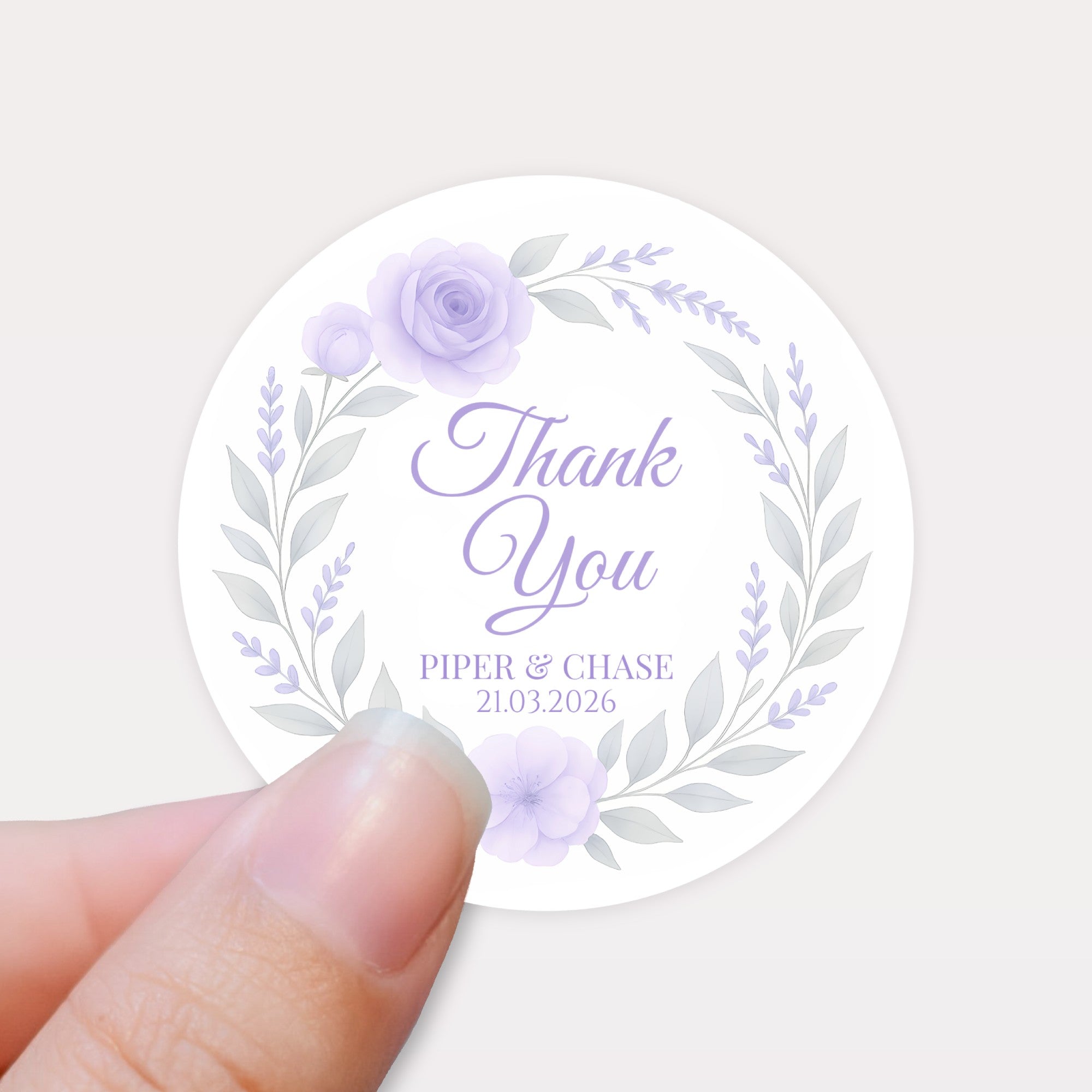 Personalised Lilac Rose & Lavender Wedding Thank You Stickers – Custom Floral Favour Labels