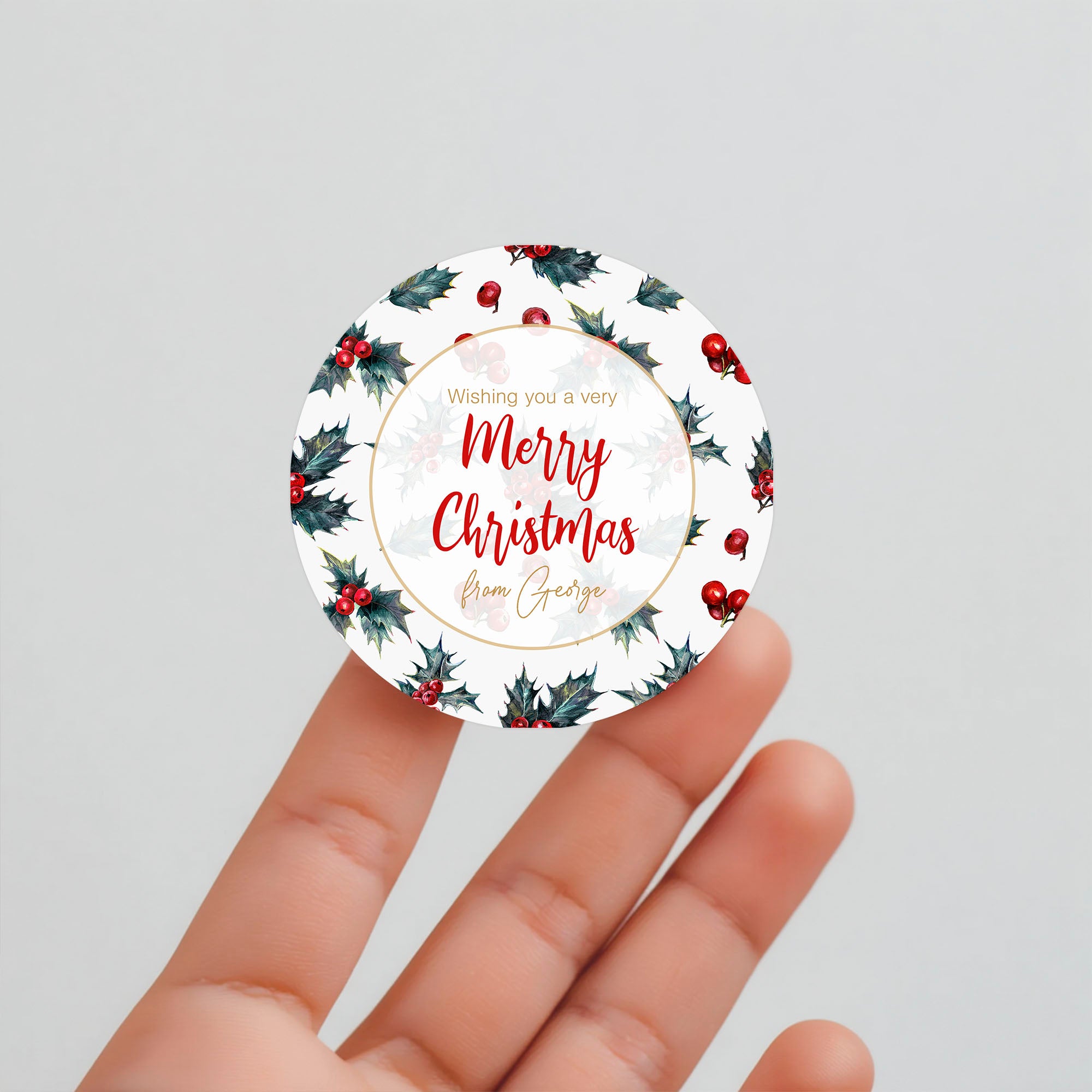 Personalised Merry Christmas Sticker Labels Holly Custom