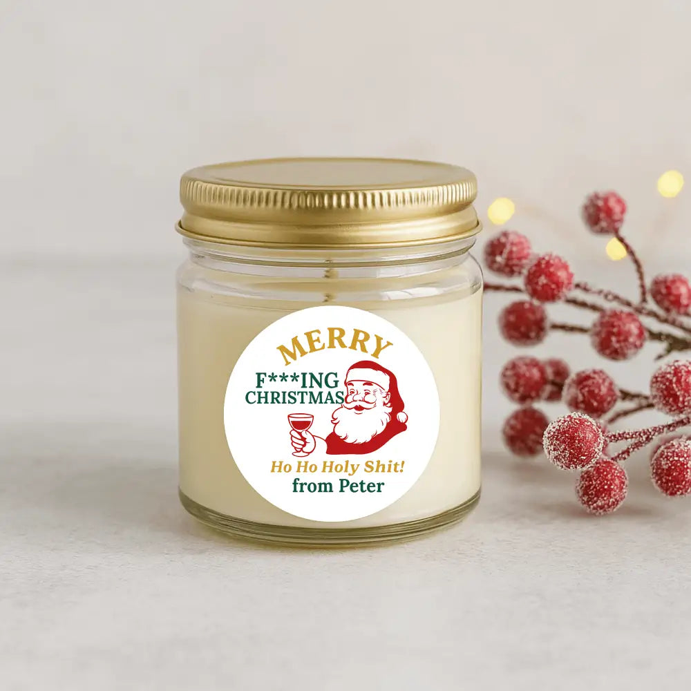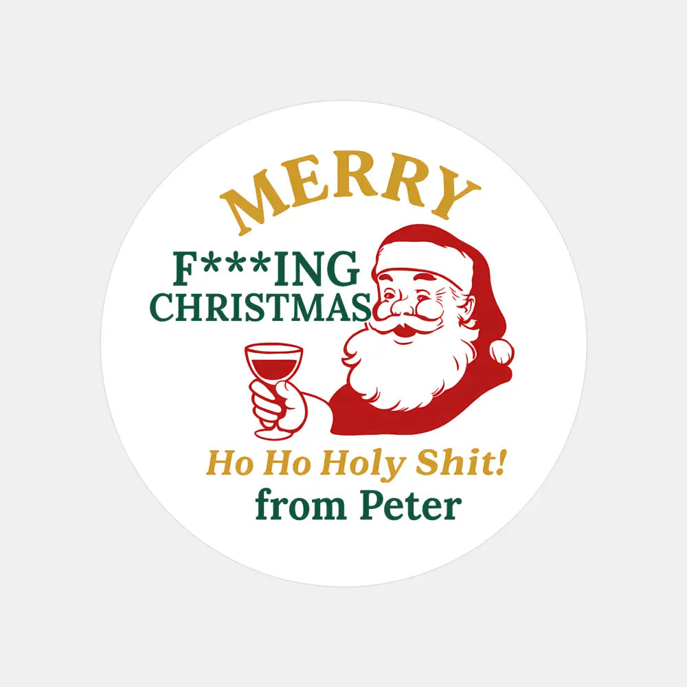 This “Merry F**ing Christmas – Ho Ho Holy Sht!” sticker brings all the festive chaos with a dash of sass and a lot of truth. Featuring a cheeky Santa raising his wine glass, it’s the perfect gift tag for the season’s most honest greetings.