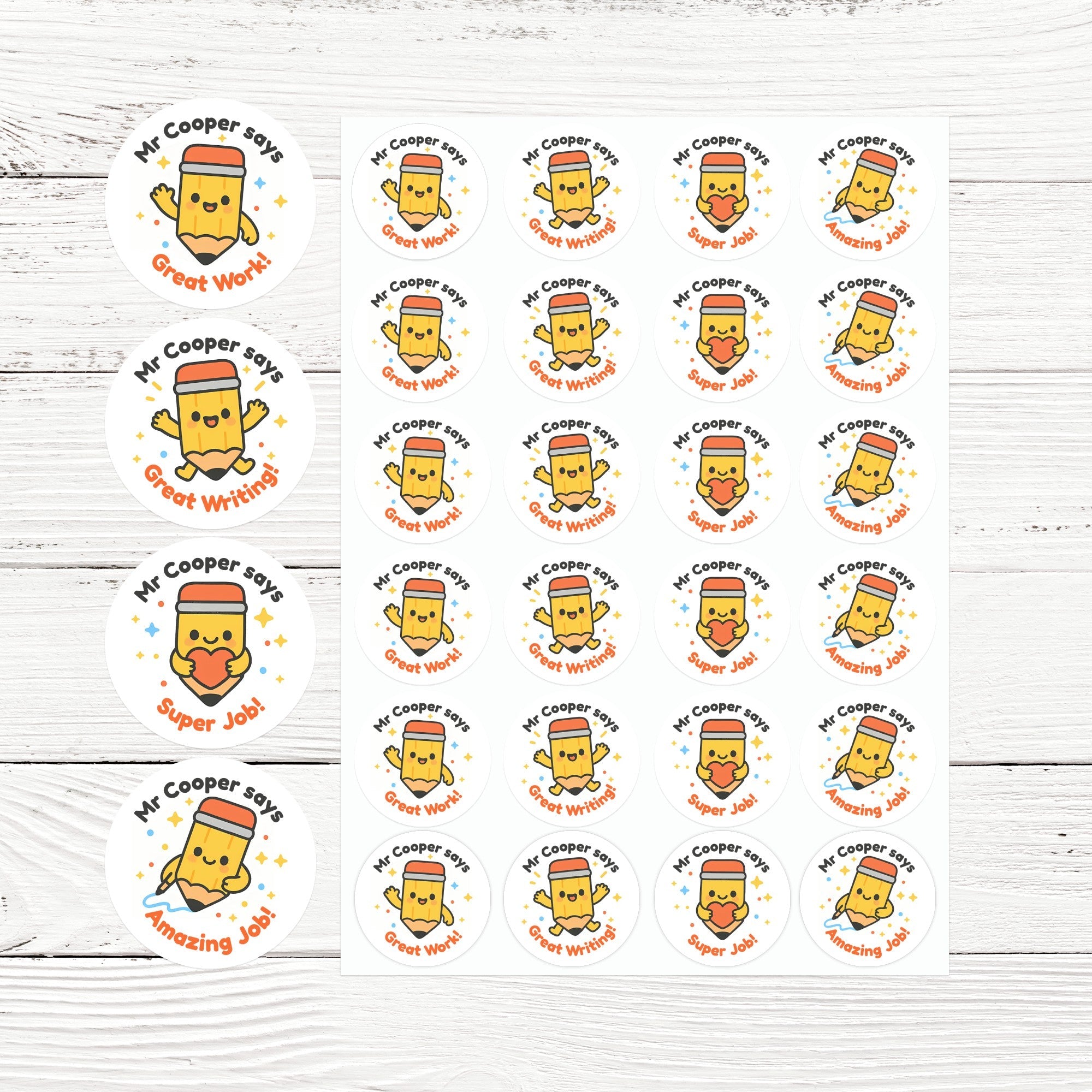 Each sticker is personalised with your teacher name (e.g. “Mr Cooper says”), creating a friendly, encouraging message that students instantly associate with praise, confidence, and achievement.