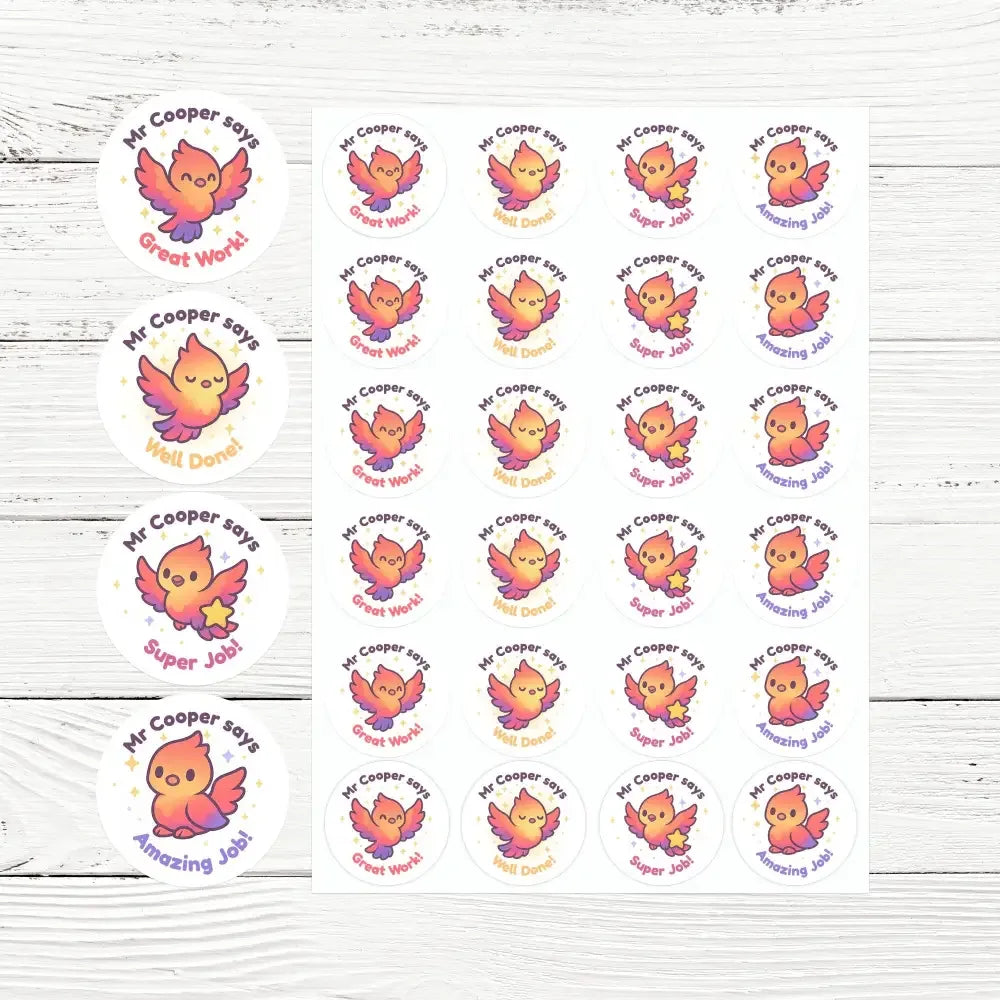Personalised Phoenix Teacher Reward Stickers – Custom Name Classroom Praise Stickers