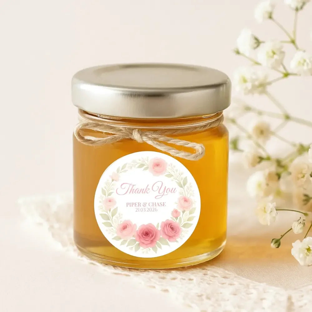 Personalised Pink Rose Wedding Thank You Stickers – Custom Blush Floral Favour Labels