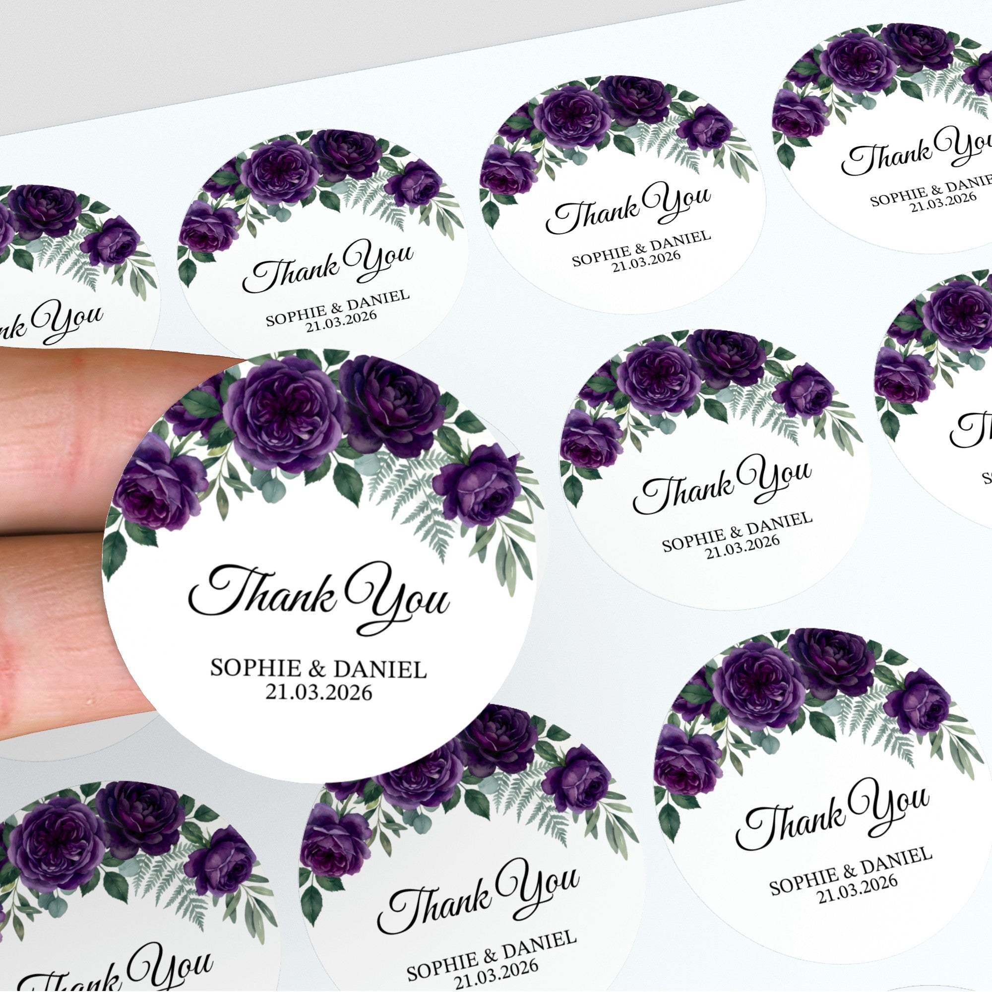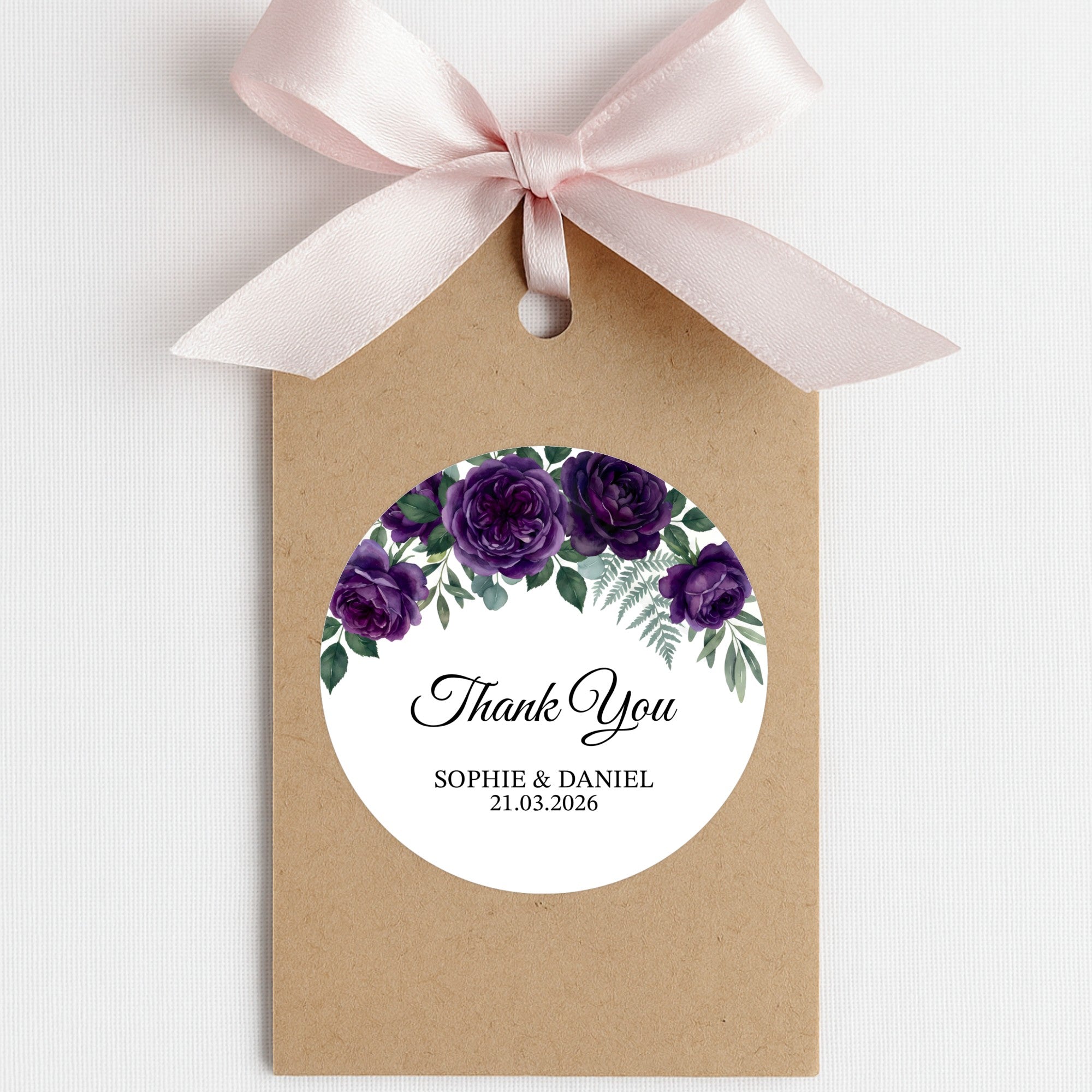 Personalised Plum Rose Wedding Thank You Stickers | Dark Floral Favour Labels