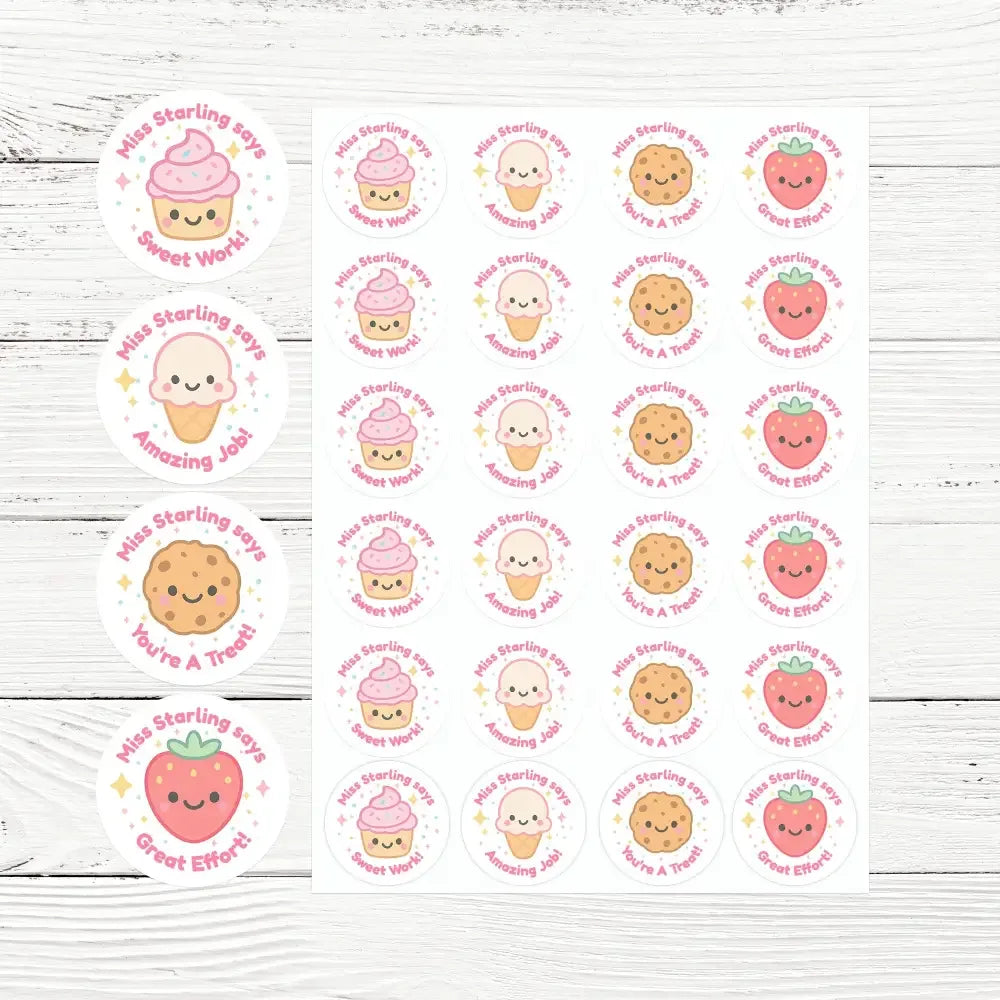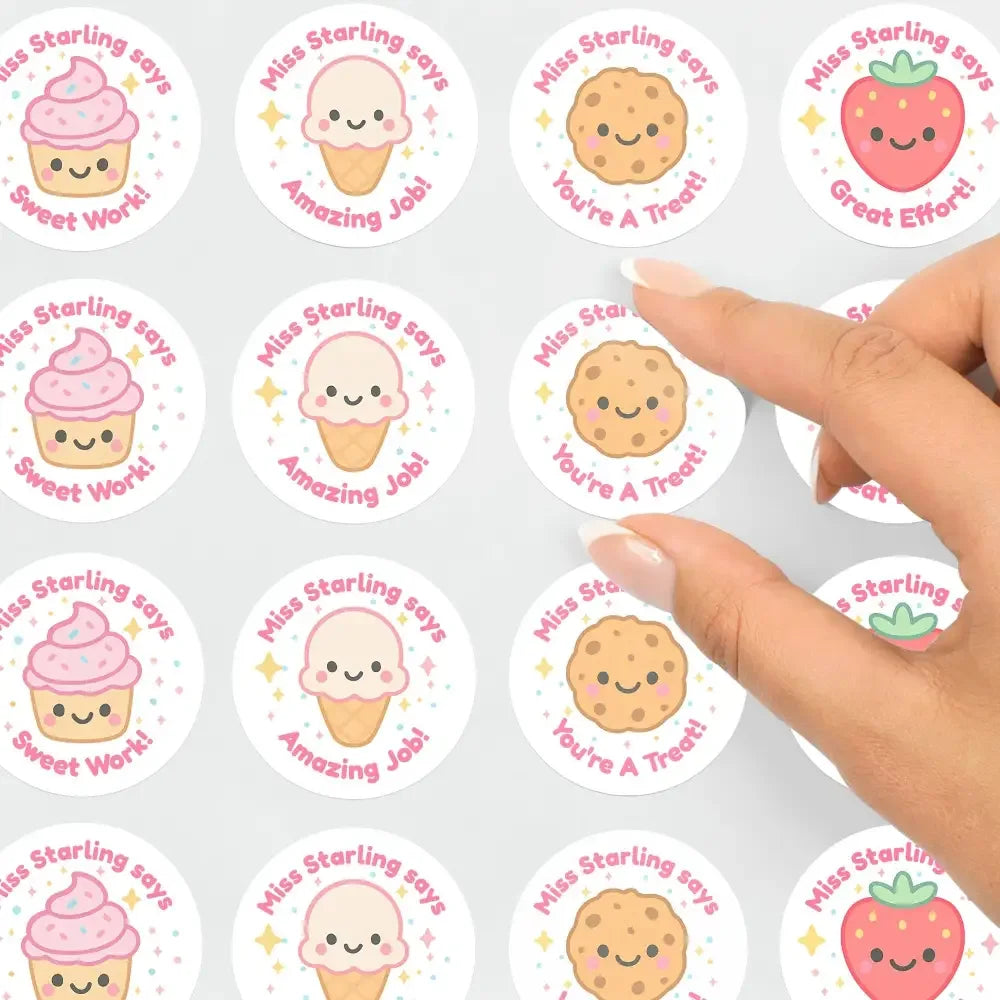 Each sticker includes your personalised name (e.g. “Miss Starling says”), adding a friendly and familiar touch that makes every reward feel extra special.