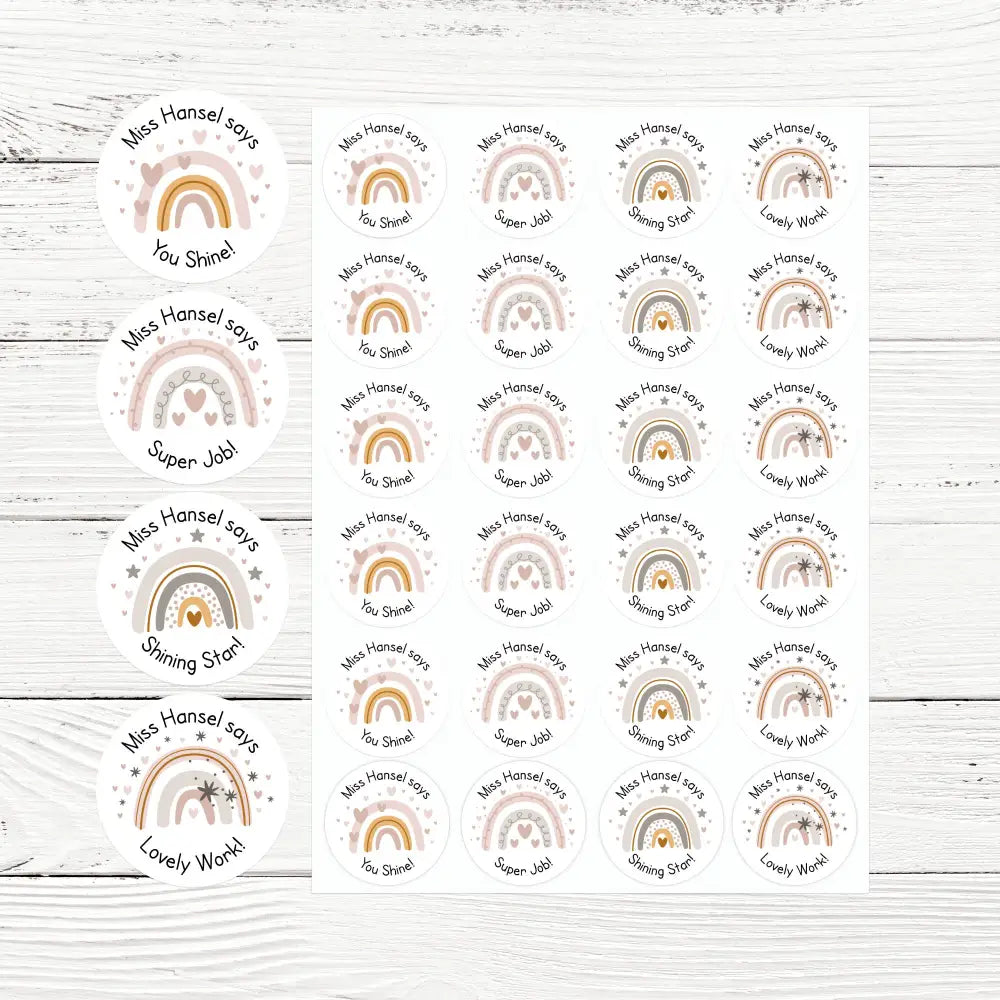 Celebrate your students’ hard work in style with these beautiful boho rainbow teacher reward stickers, customisable with your name!