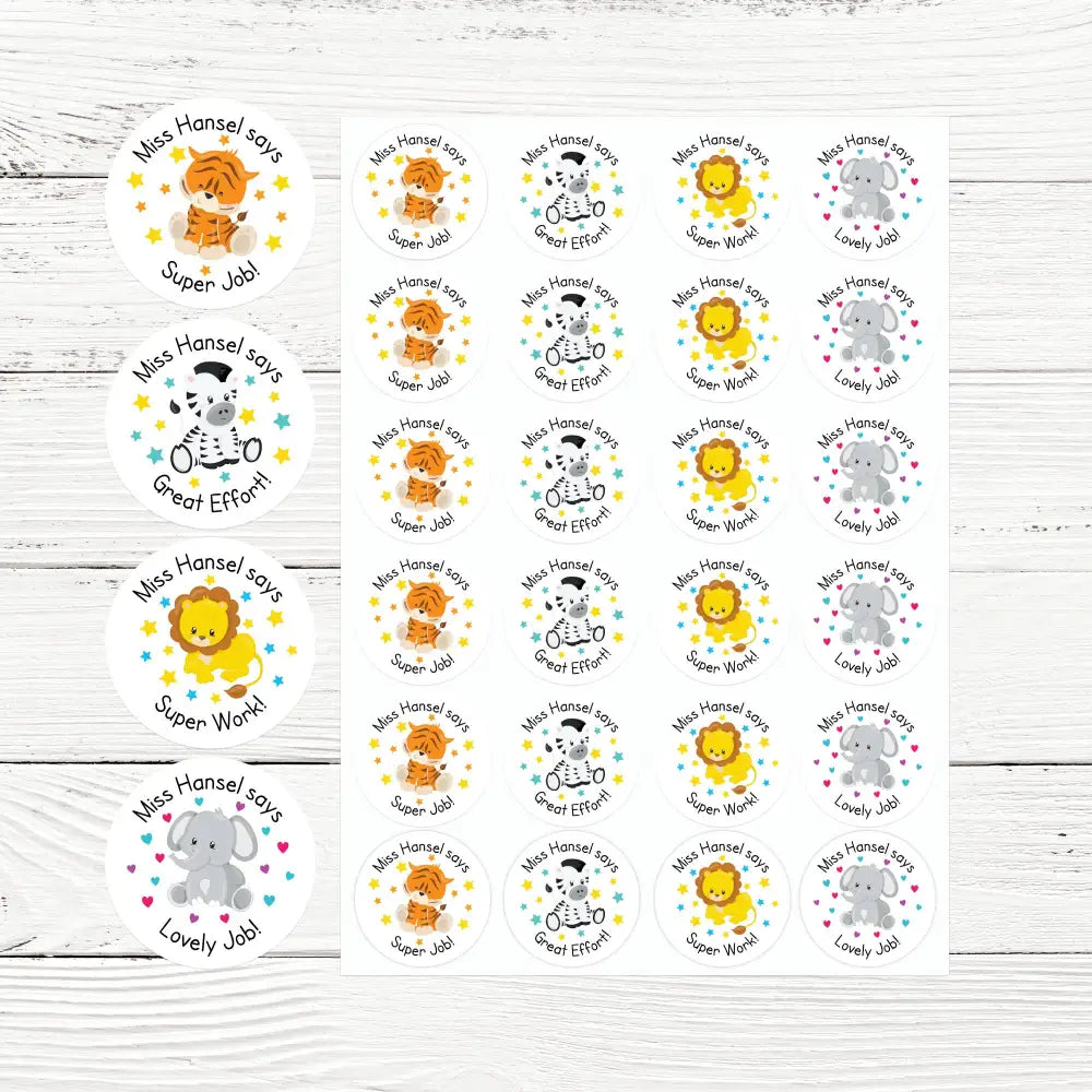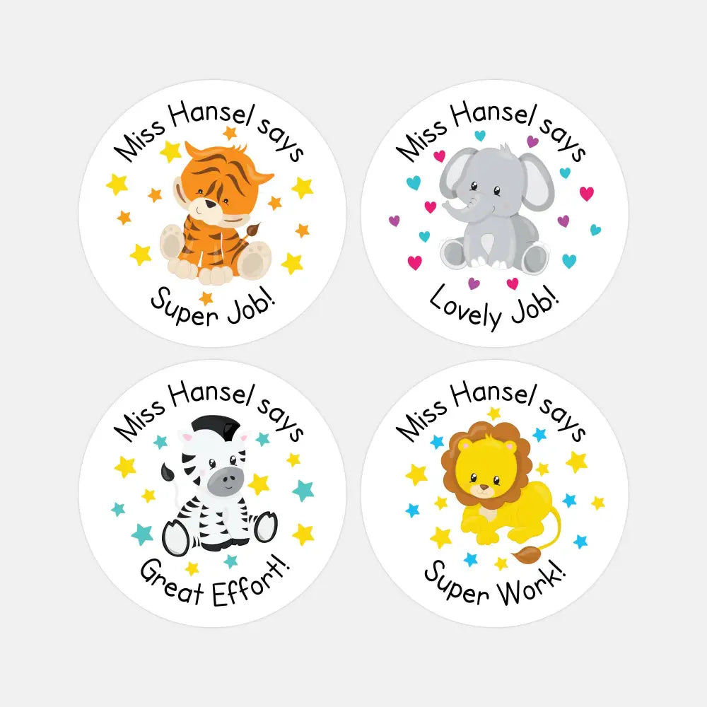 Personalised Teacher Reward Stickers Custom Name Label Jungle Animals Set