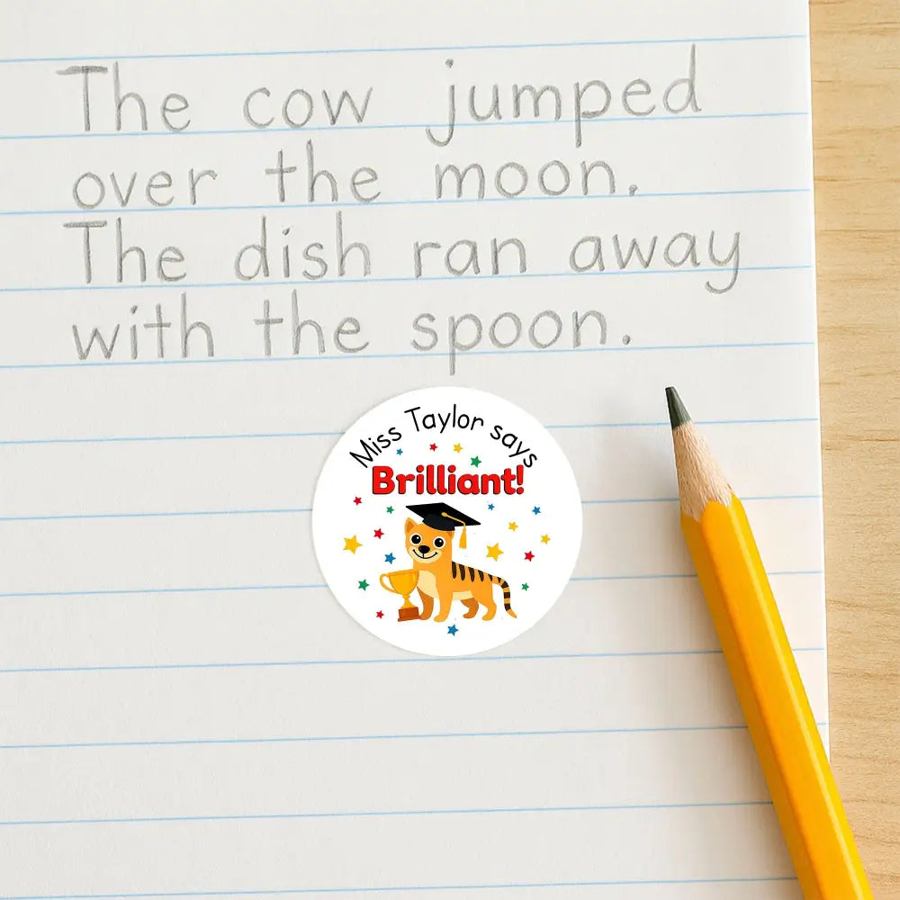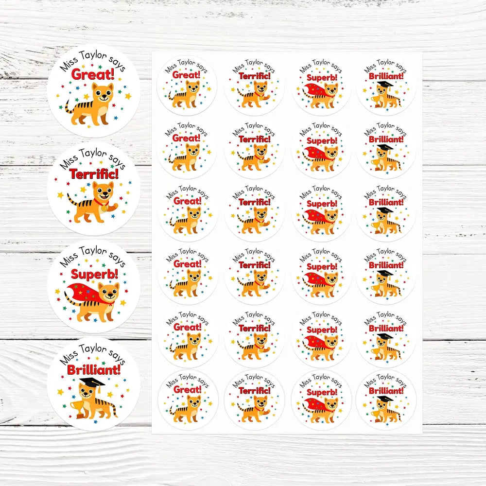 Make classroom rewards extra special with these personalised teacher stickers featuring a cute Tasmanian Tiger (Thylacine) character! Perfect for recognising effort, improvement, and great work — kids love earning these bright and cheerful stickers.