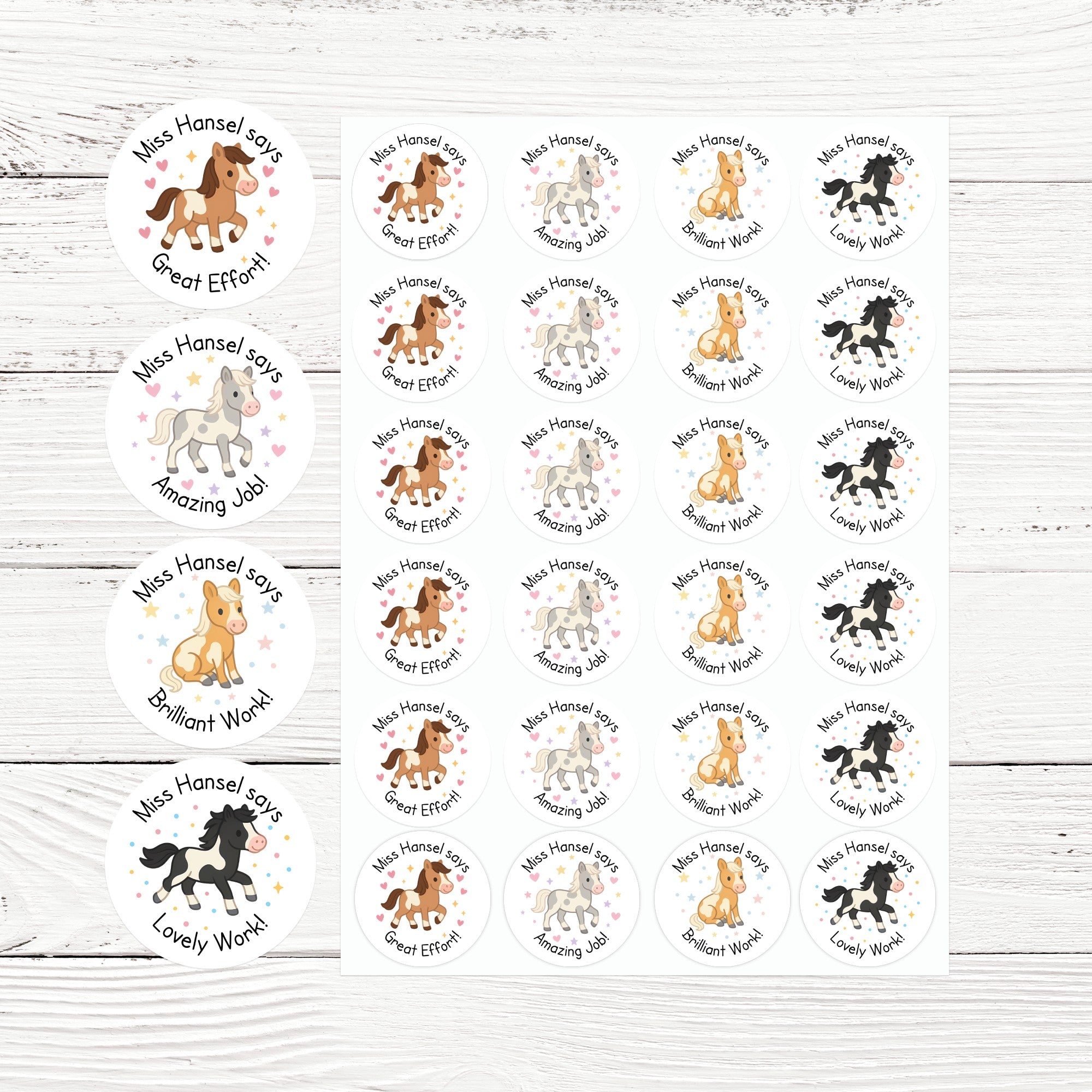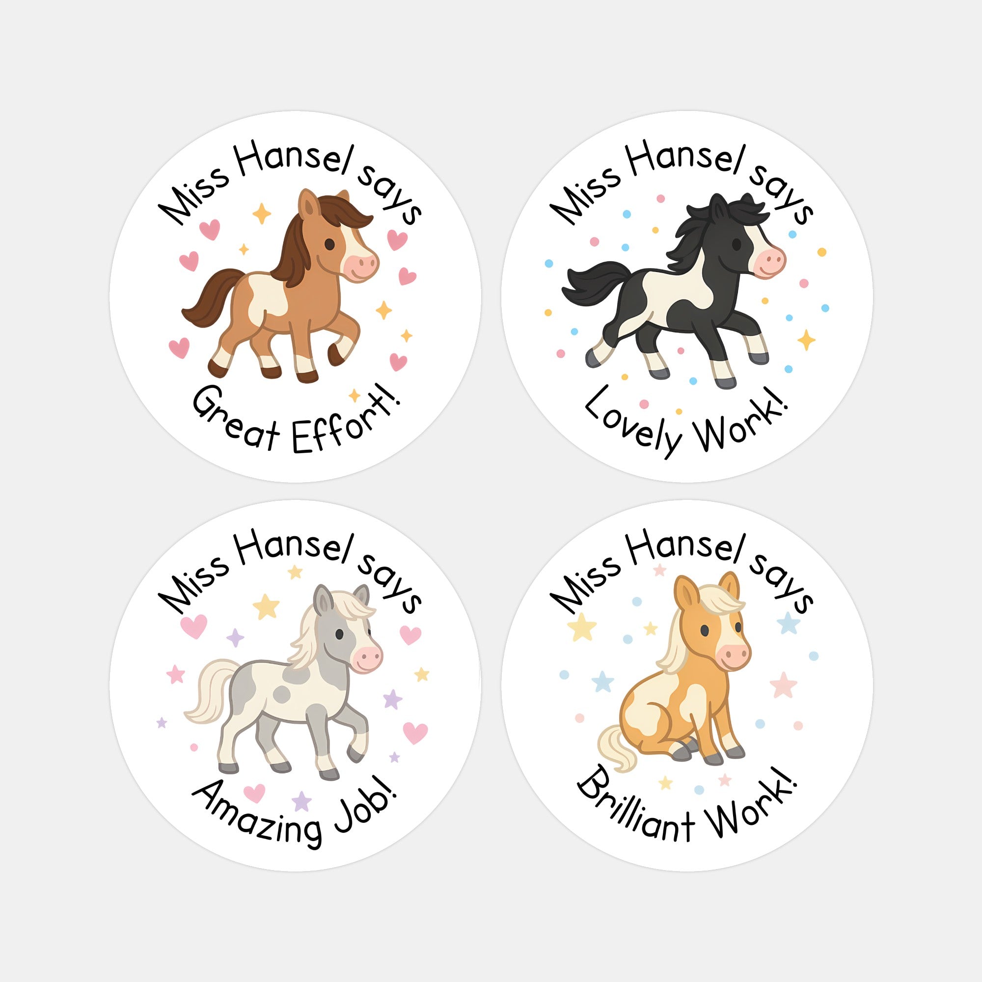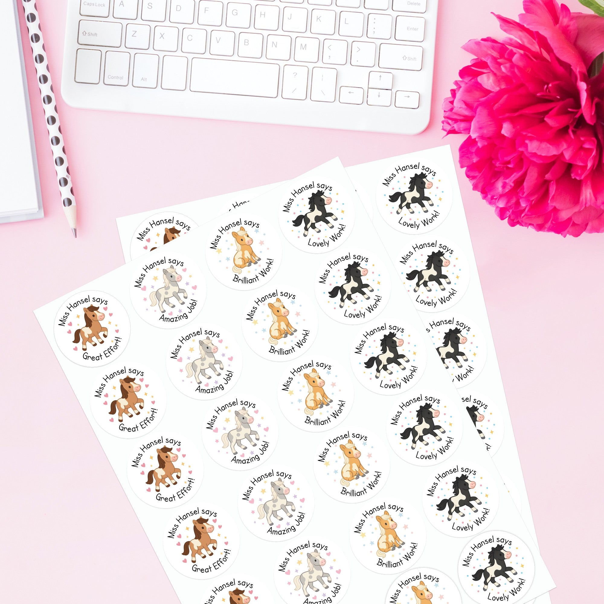 Personalised Teacher Reward Stickers – Cute Horse & Pony Classroom Praise Labels