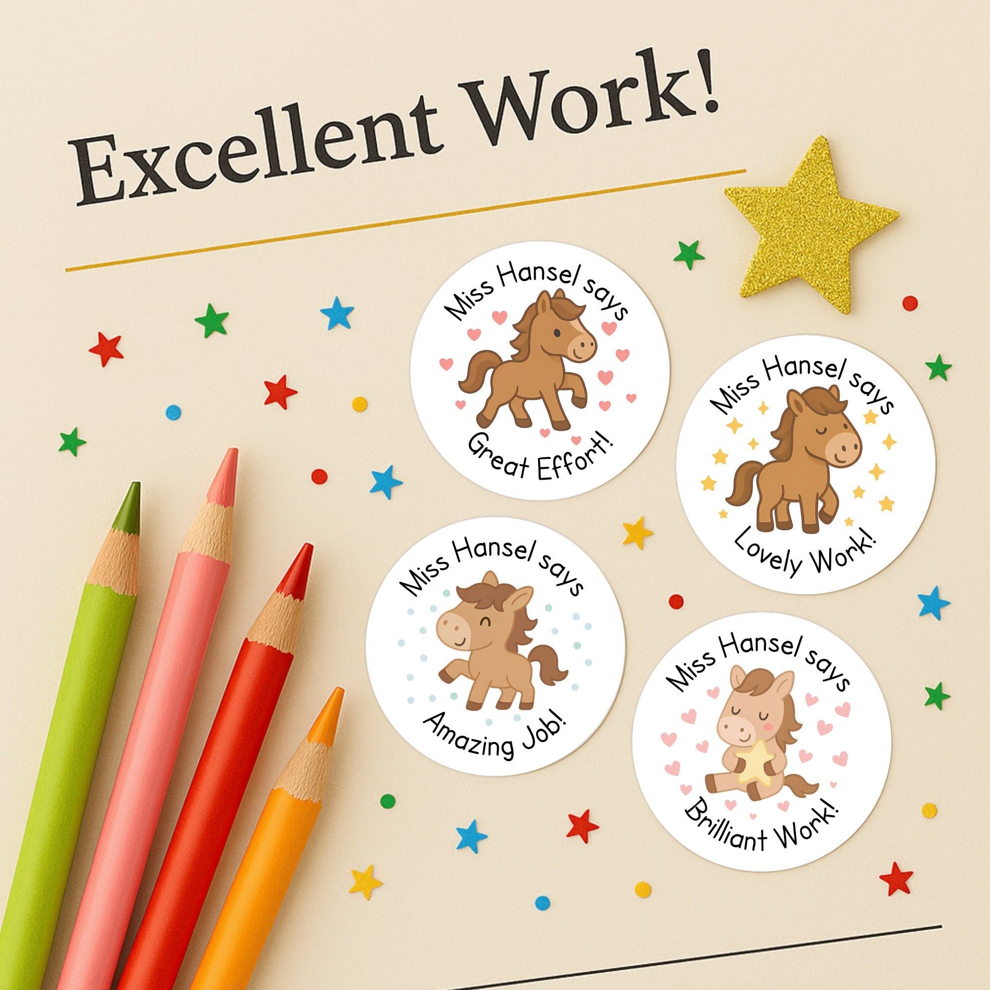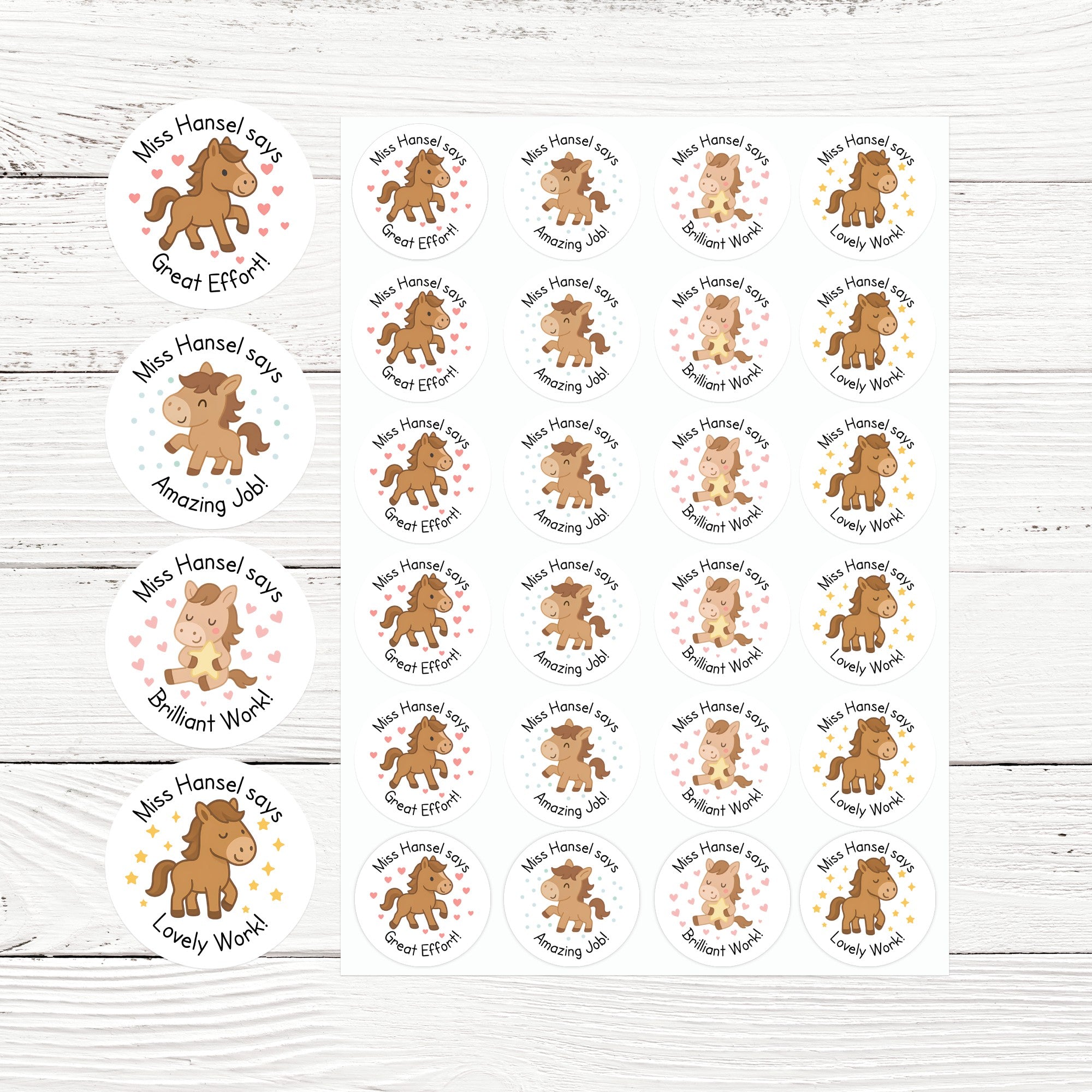 Personalised Teacher Reward Stickers – Cute Pony & Horse Classroom Praise Labels