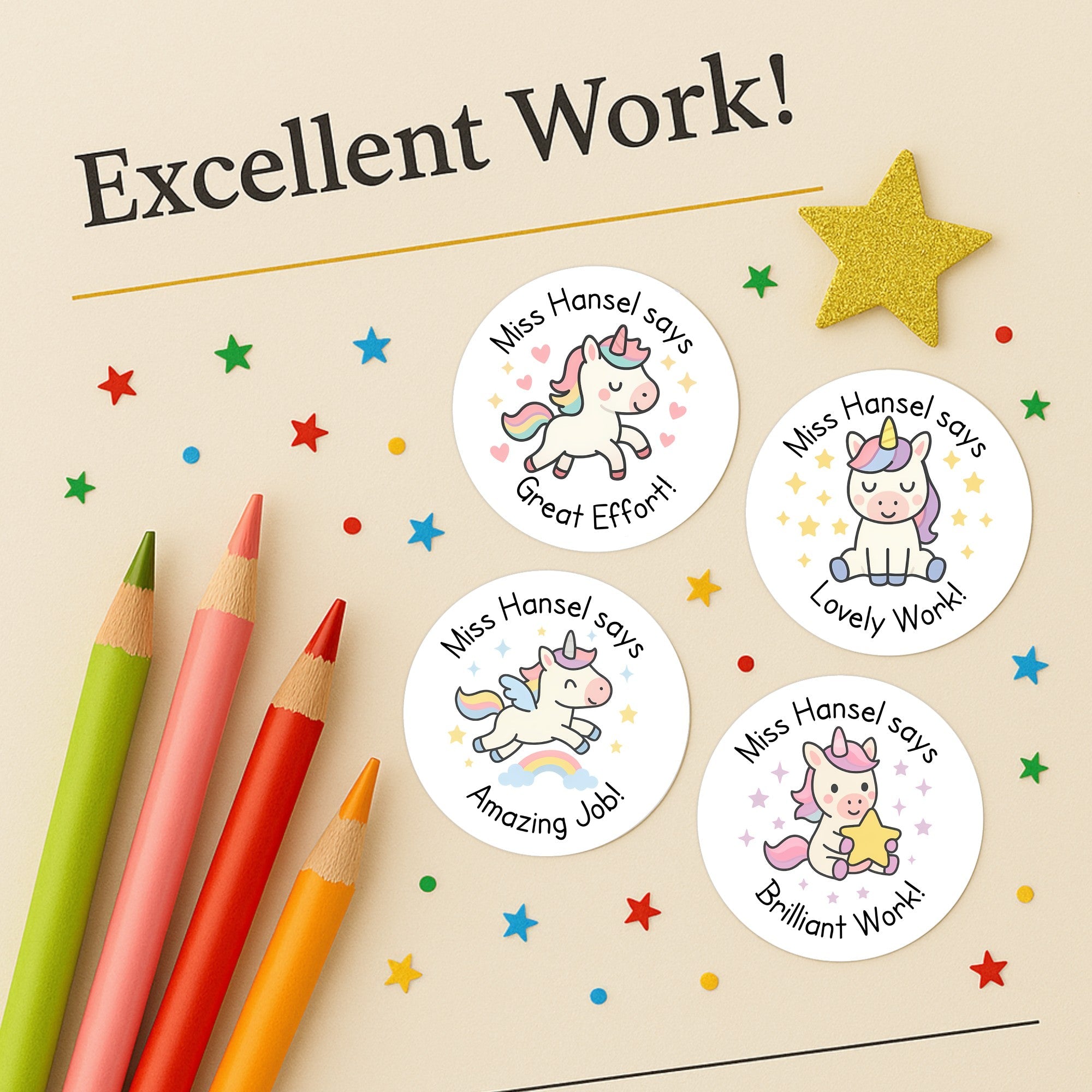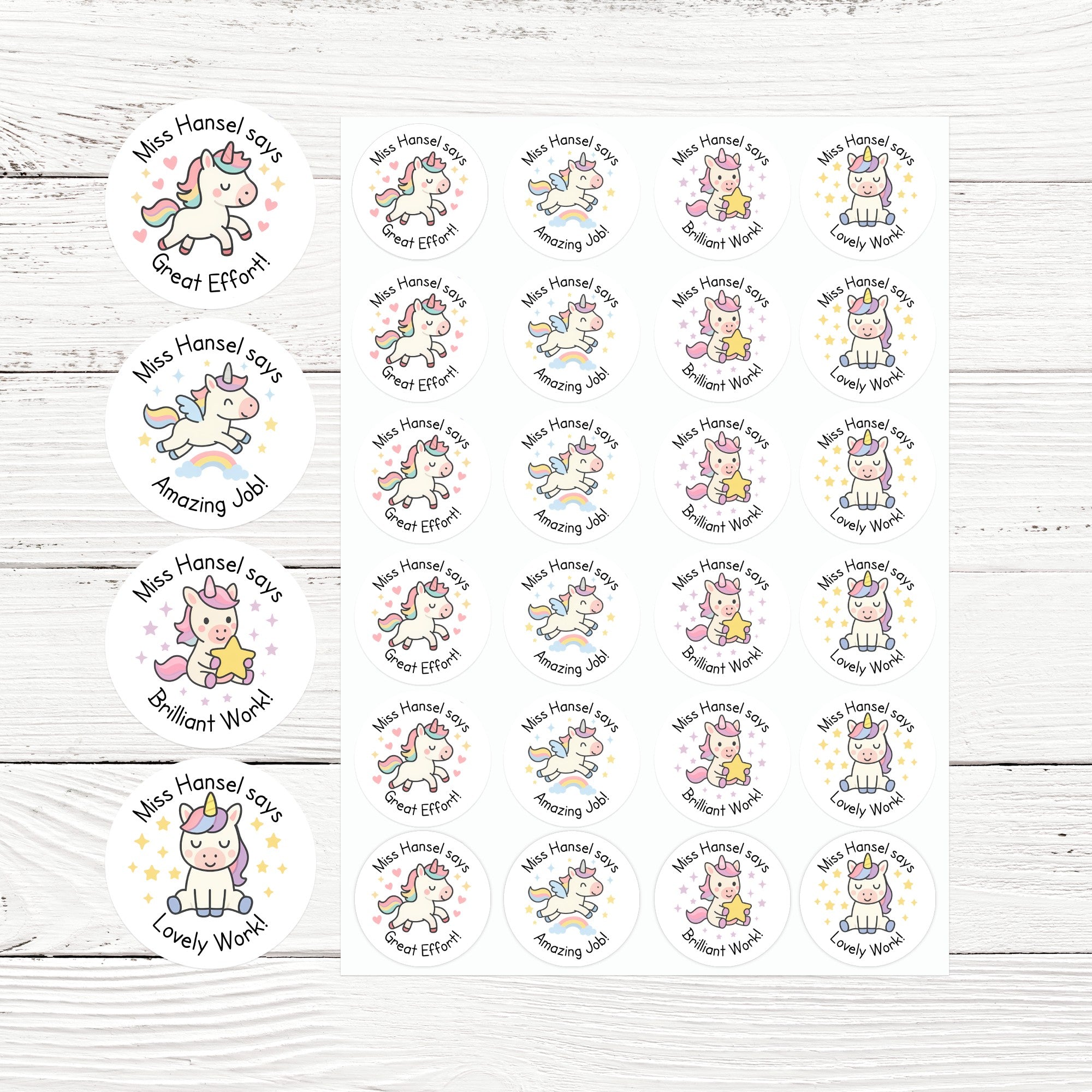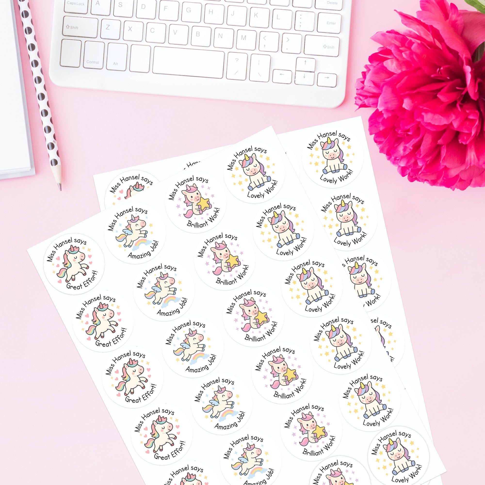 Personalised Teacher Reward Stickers – Cute Unicorn Classroom Praise & Motivation Labels