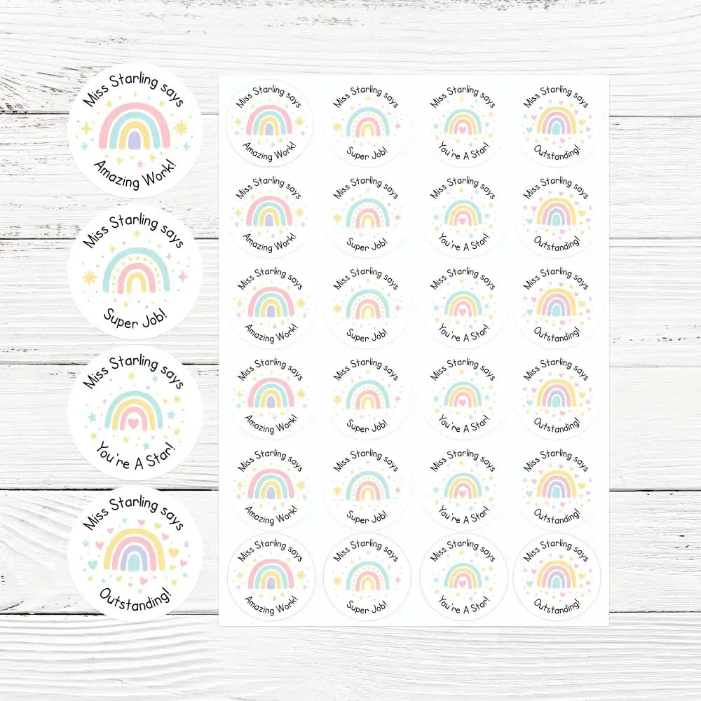 Each sticker is personalised with your name (e.g. “Miss Starling says”), adding a special touch that children love and connect with.