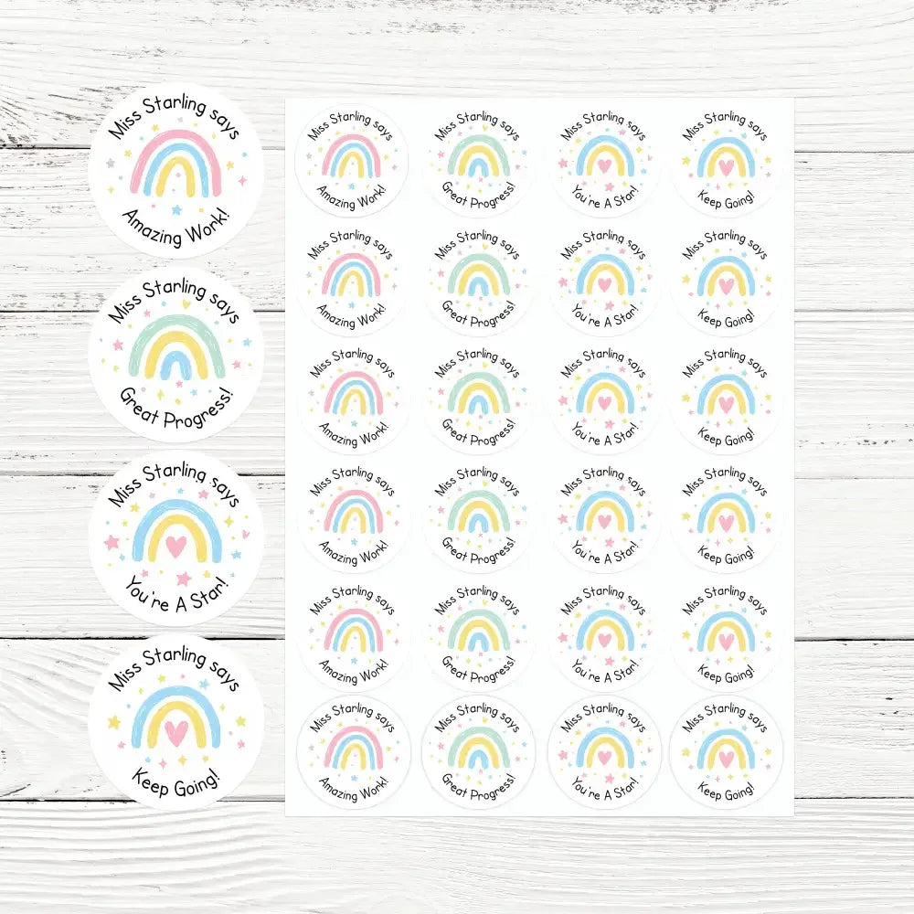 Personalised Teacher Reward Stickers – Pastel Rainbow Classroom Progress & Praise Labels