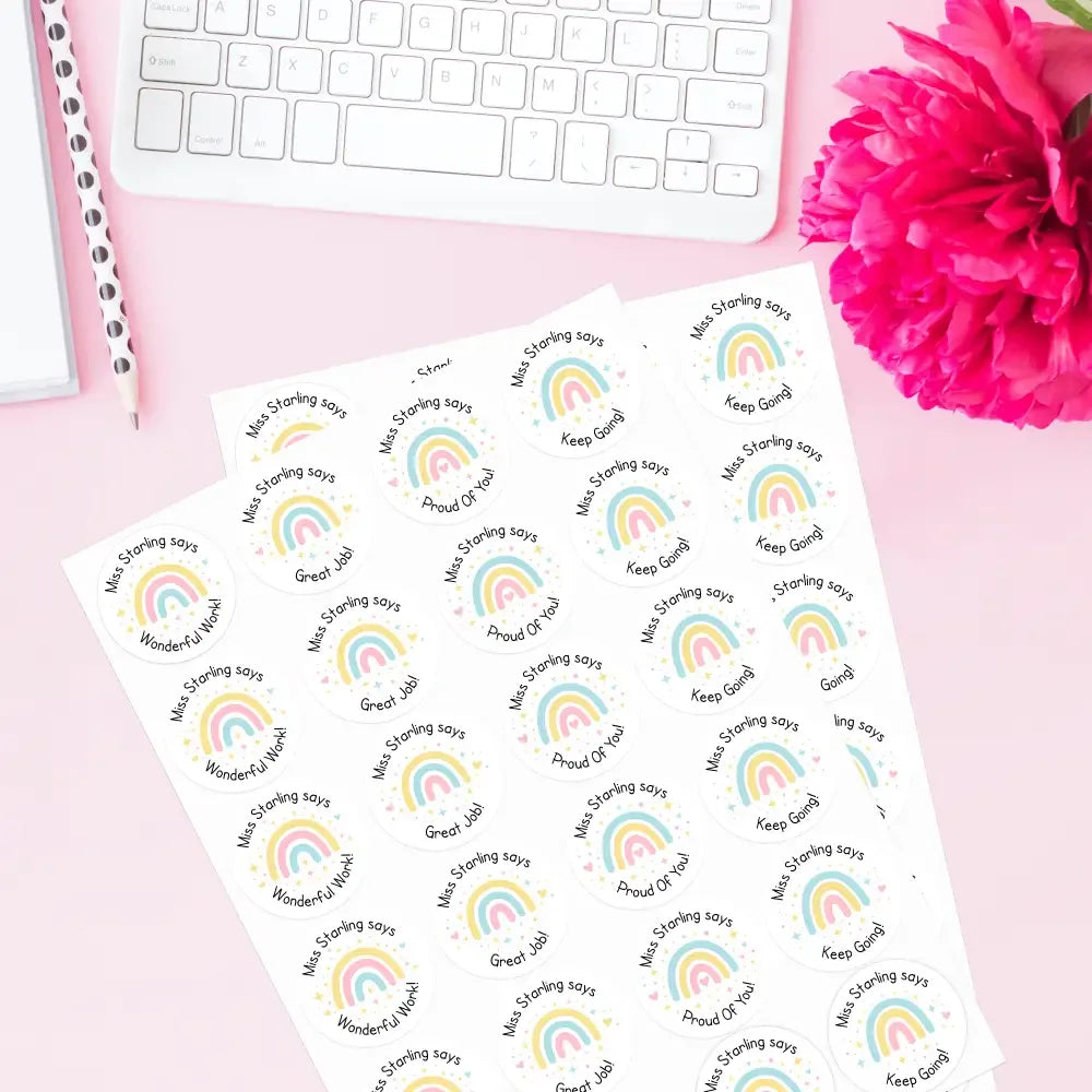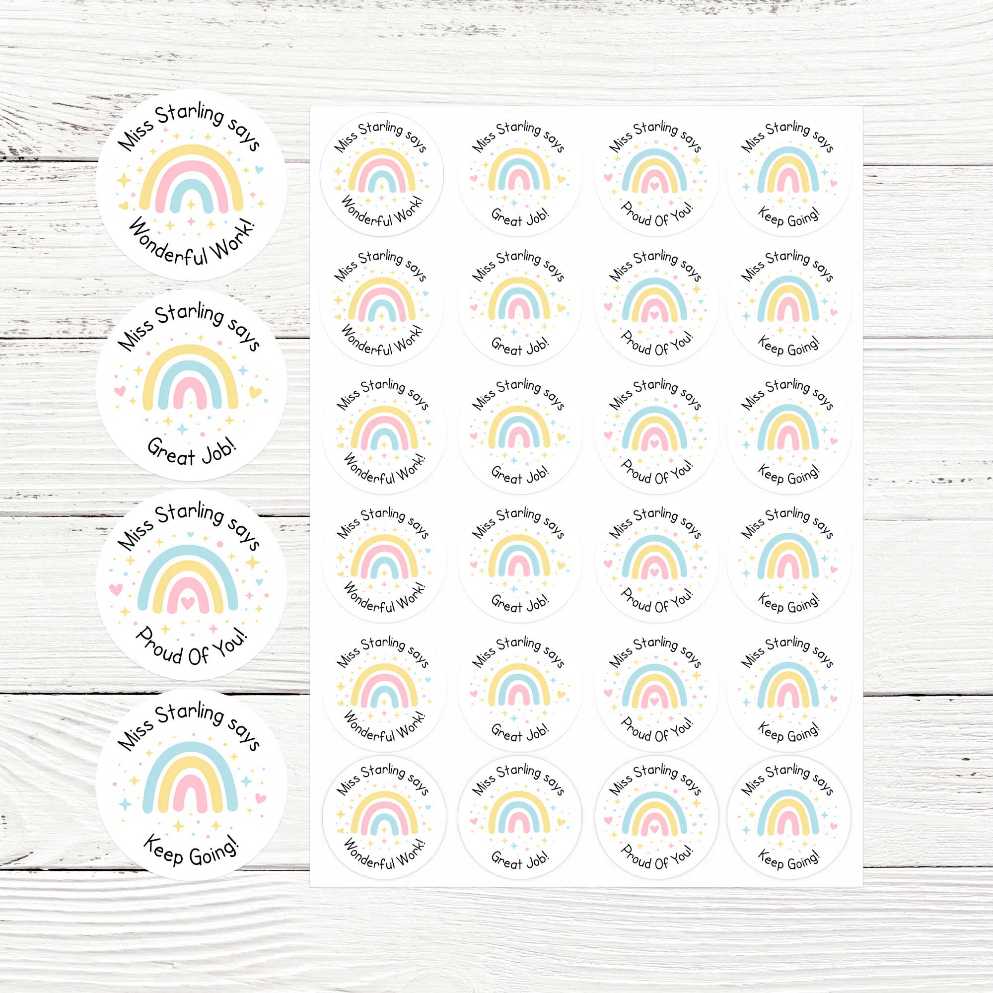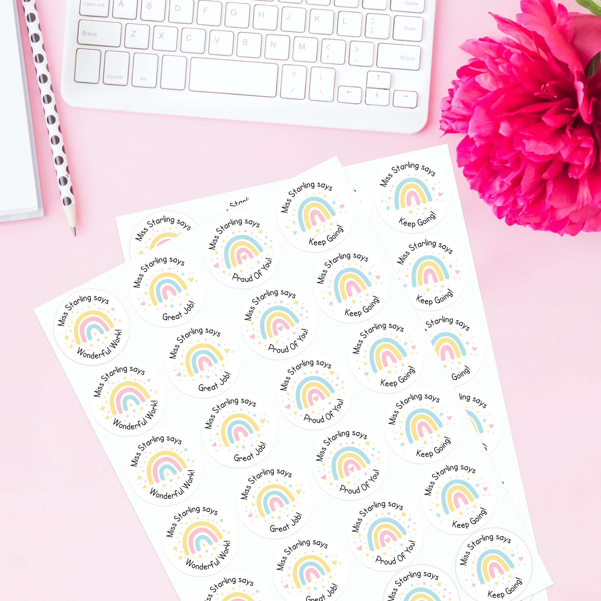 Personalised Teacher Reward Stickers – Pastel Rainbow Positive Classroom Labels