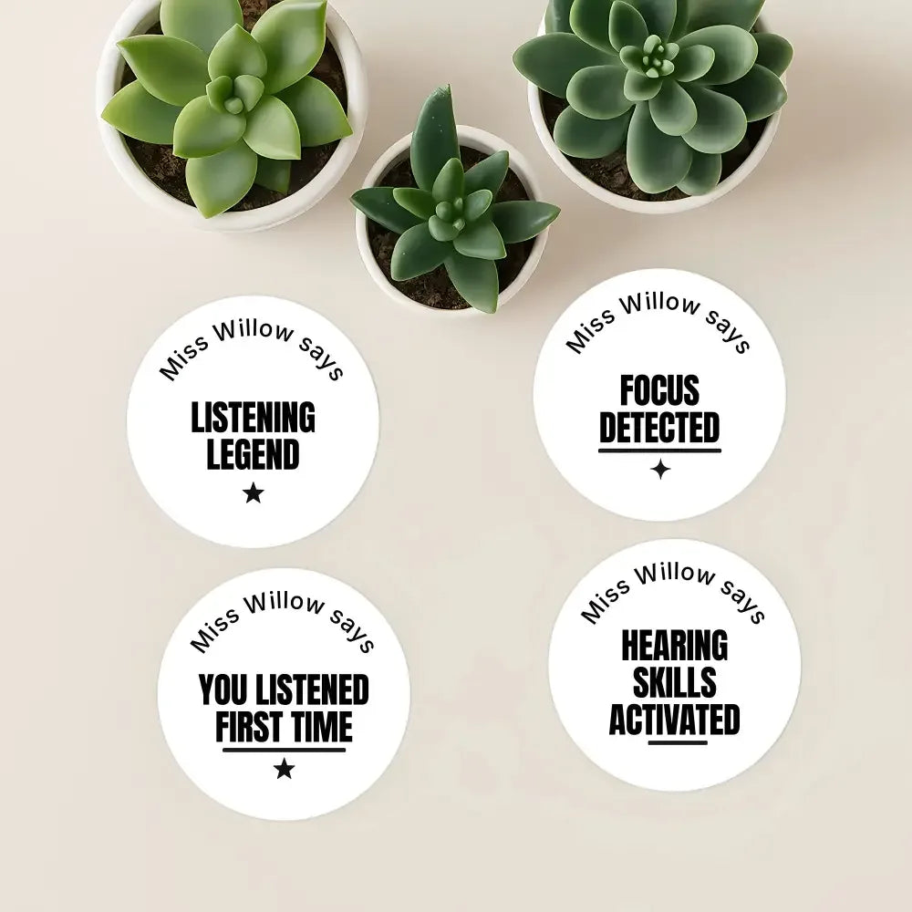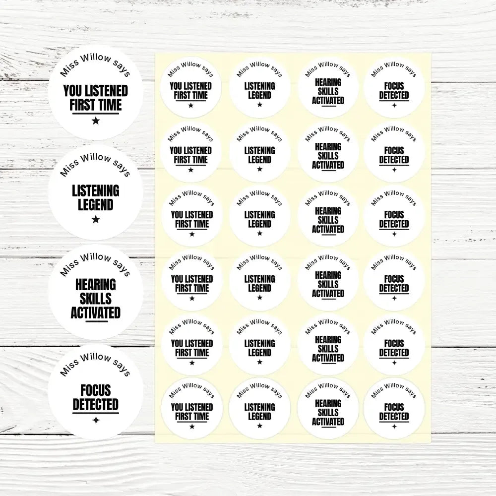 Make classroom expectations fun (with a hint of sarcasm) using these personalised minimalist teen listening and focus reward stickers. Designed for older students, each sticker includes relatable phrases like “You listened first time”, “Focus detected”, “Listening legend” and “Hearing skills activated”—ideal for celebrating those rare but glorious moments of full attention.