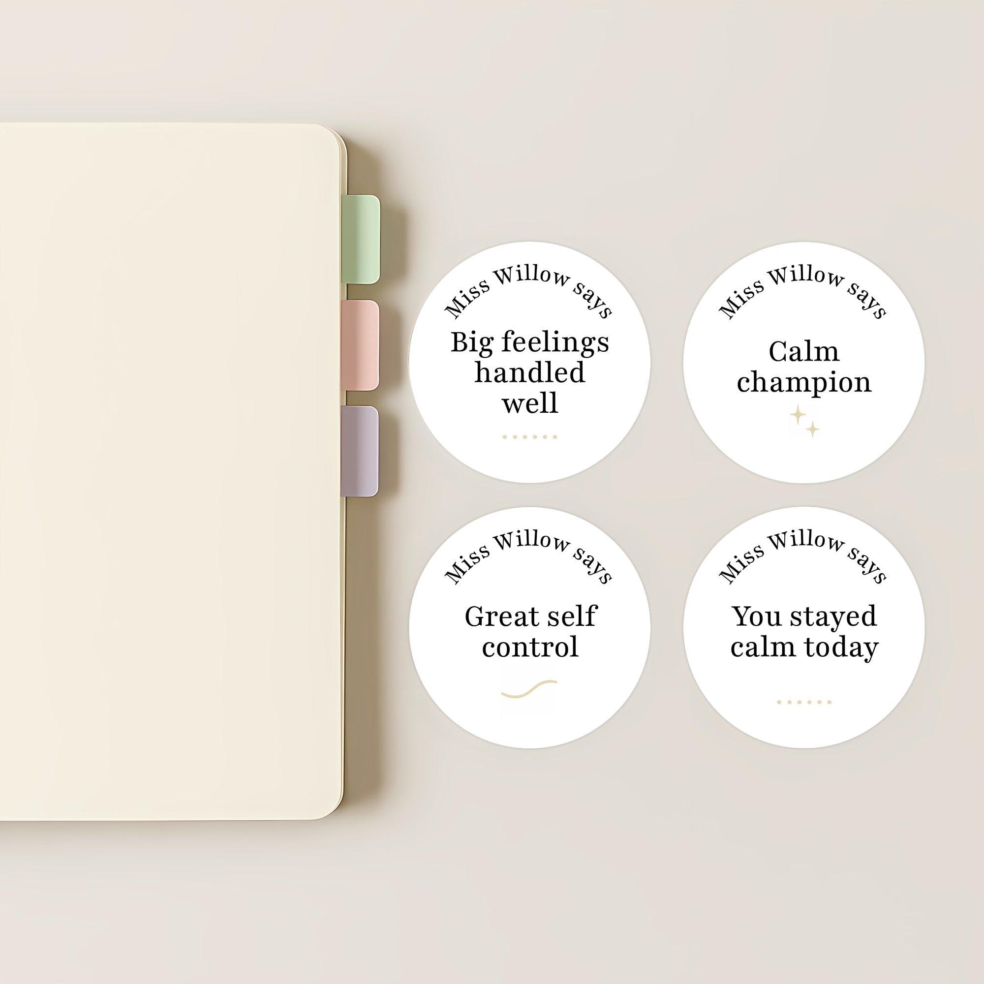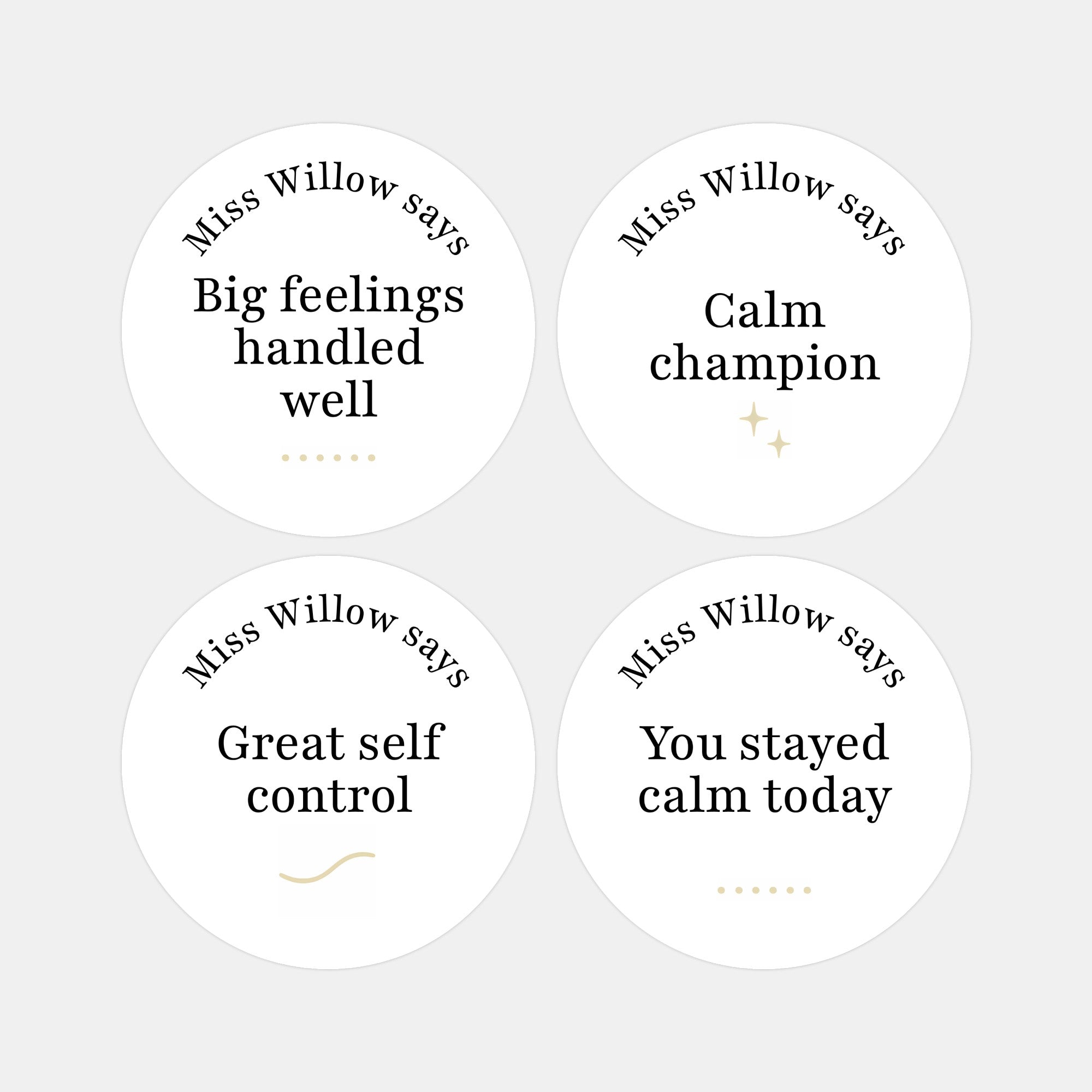Each sticker is personalised with your name (e.g. “Miss Willow says”), adding a professional, reassuring touch that helps students feel genuinely seen and supported.