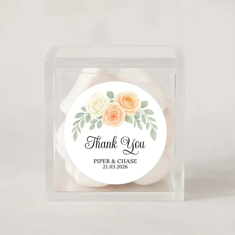 Personalised Wedding Thank You Stickers | Apricot & Ivory Rose Floral Design