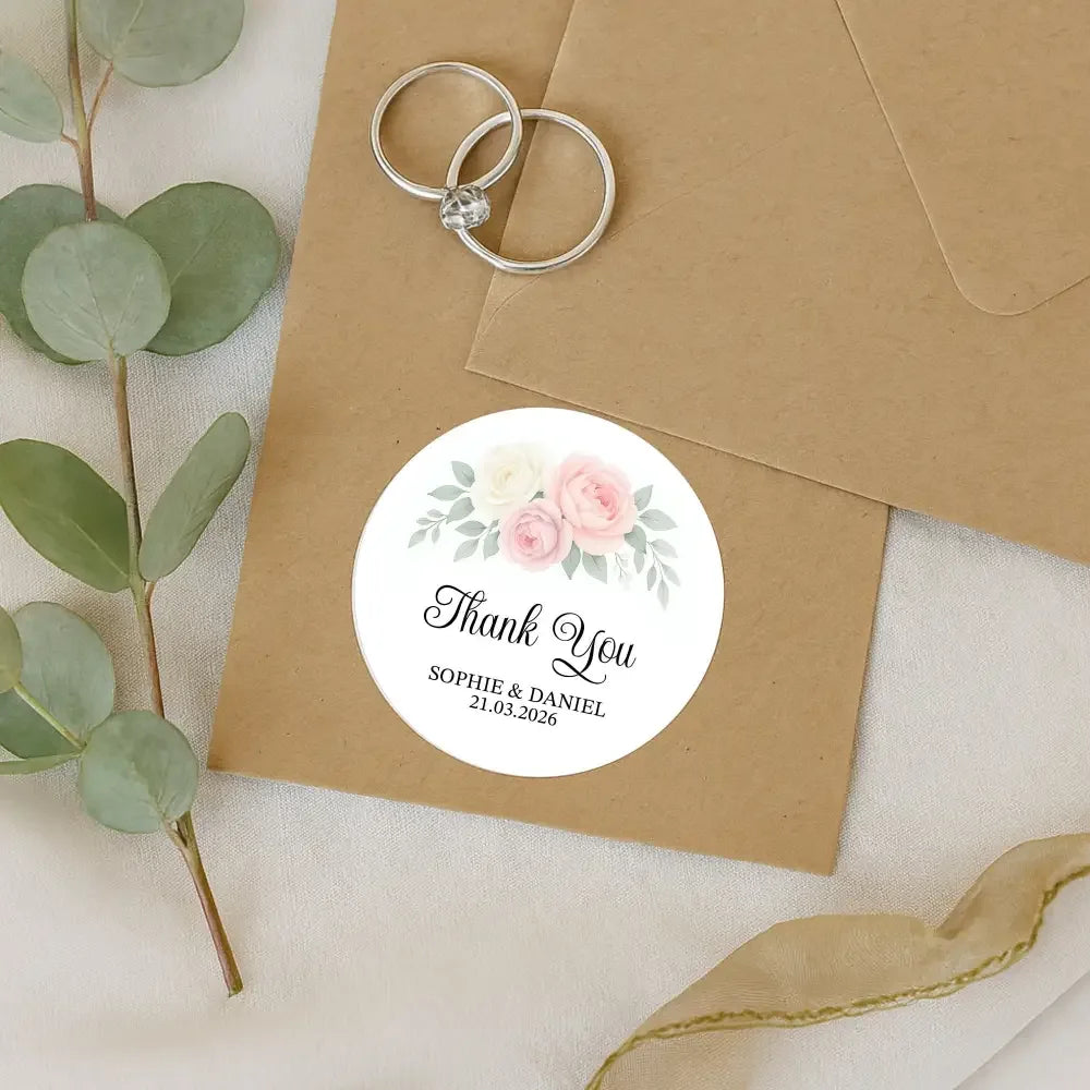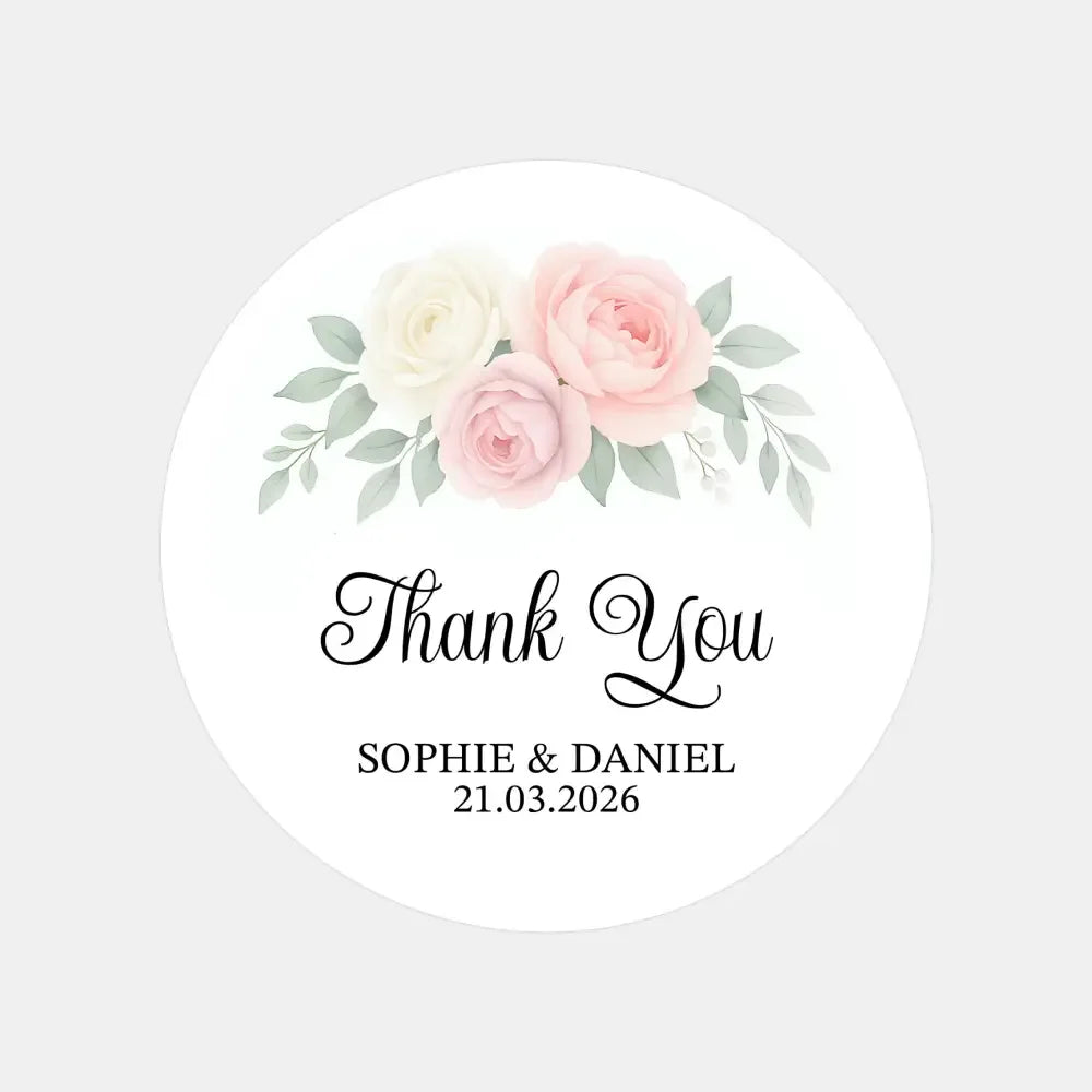 Personalised Wedding Thank You Stickers | Blush & Ivory Rose Floral Design