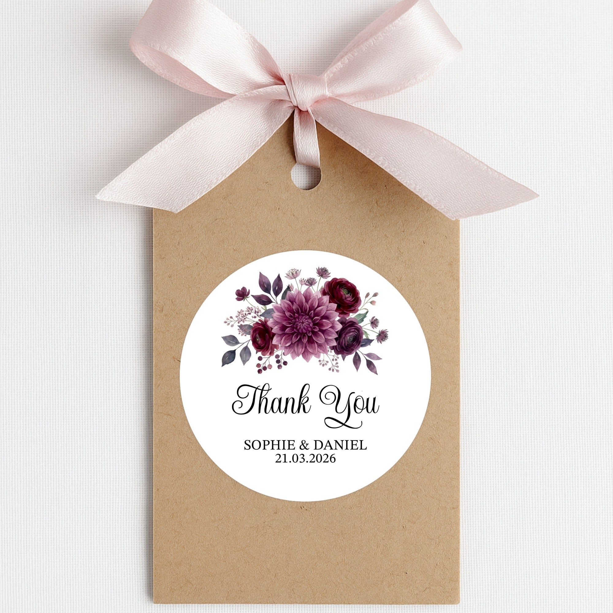 Personalised Wedding Thank You Stickers | Burgundy & Plum Floral Design