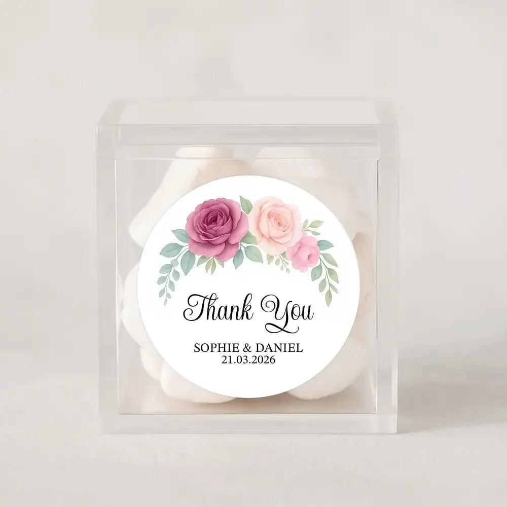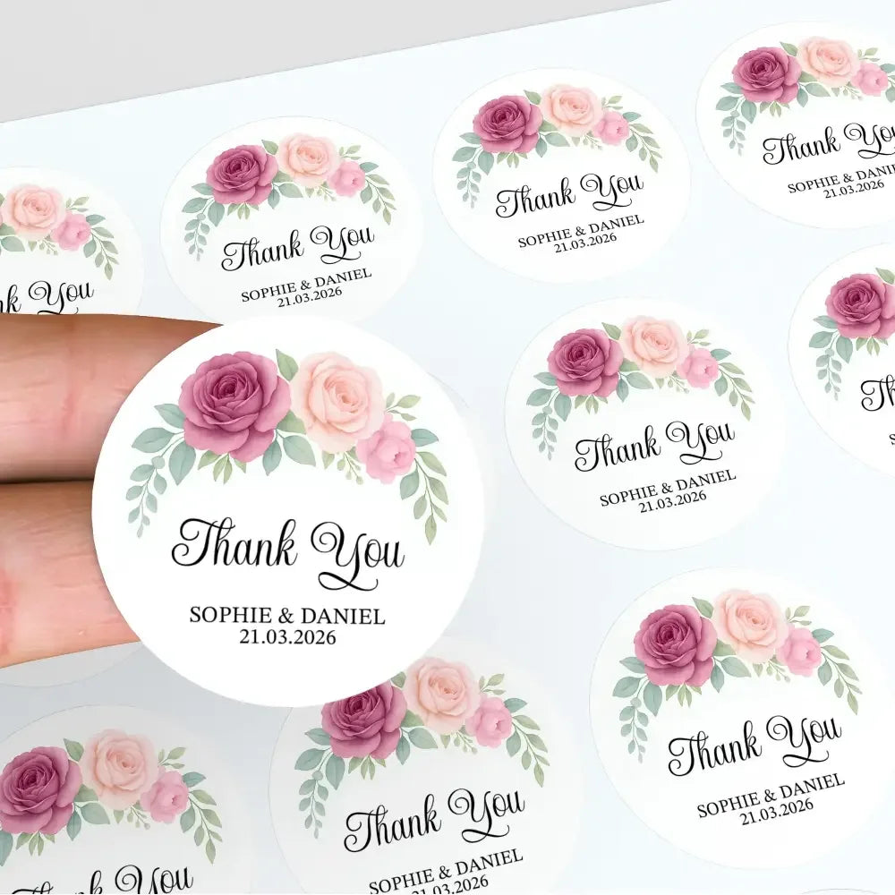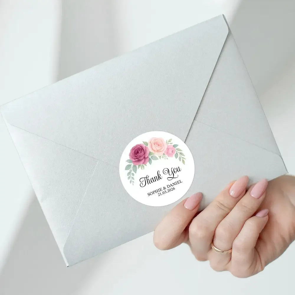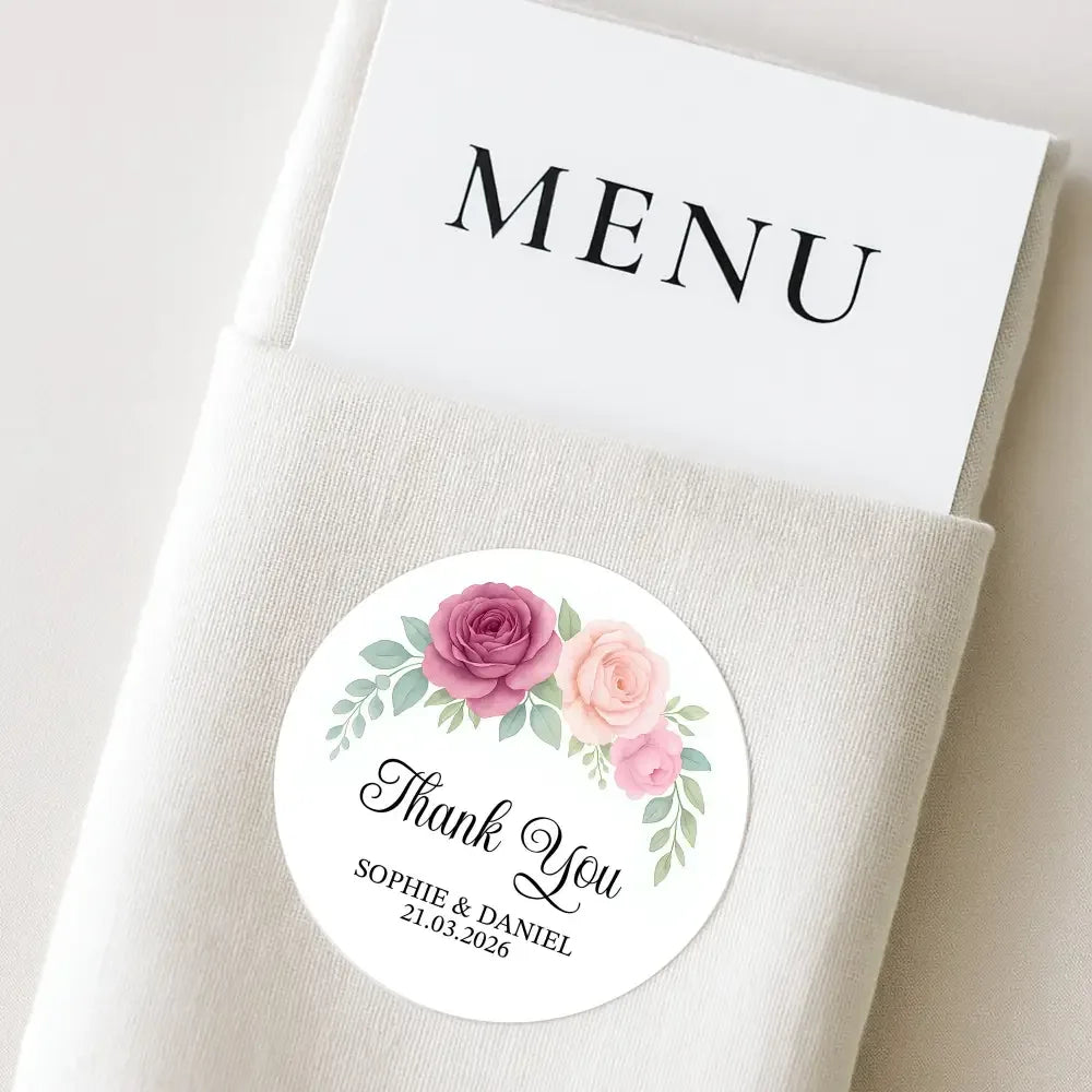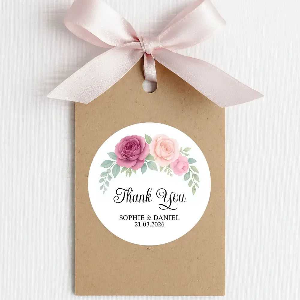 Personalised Wedding Thank You Stickers | Dusty Mauve & Blush Rose Floral Design