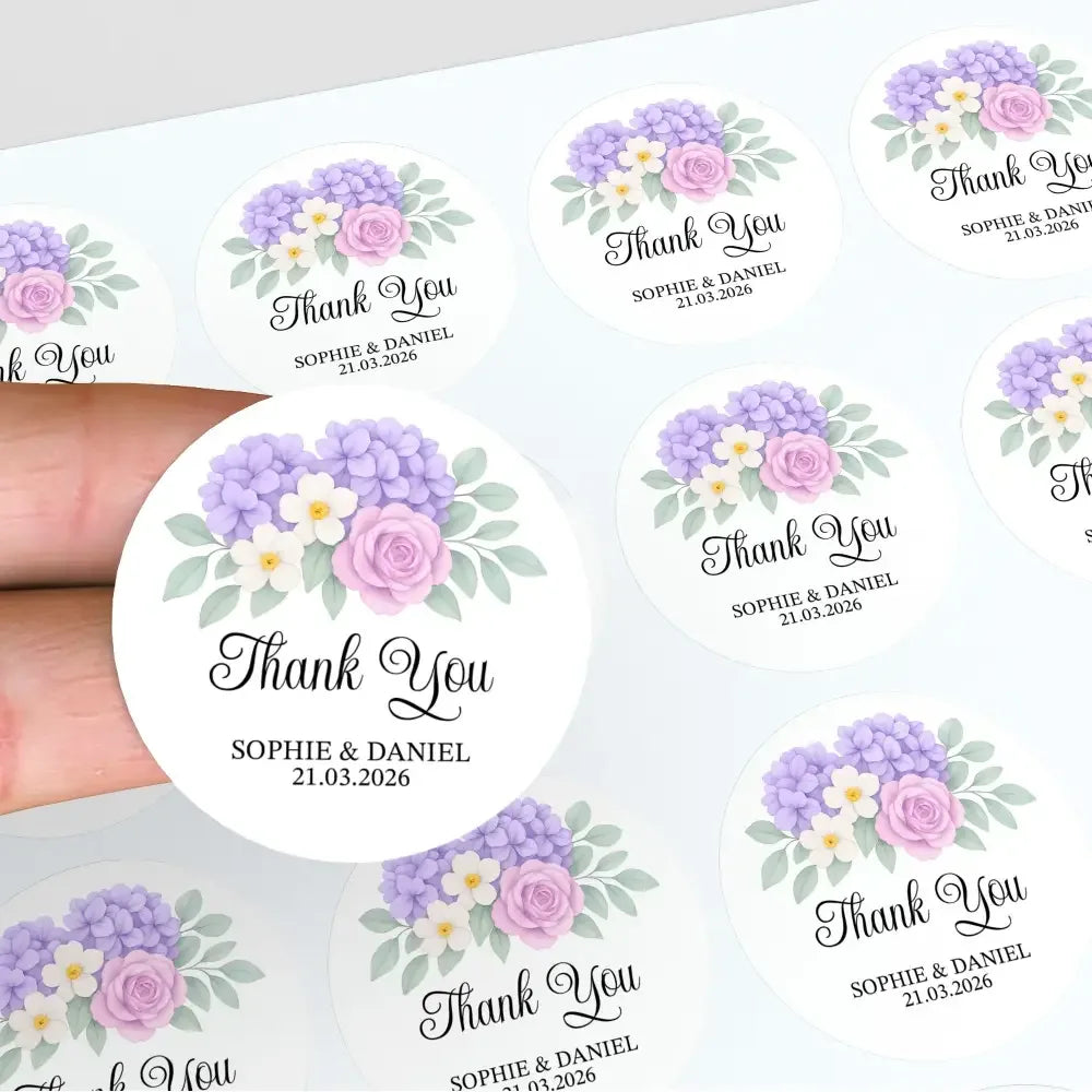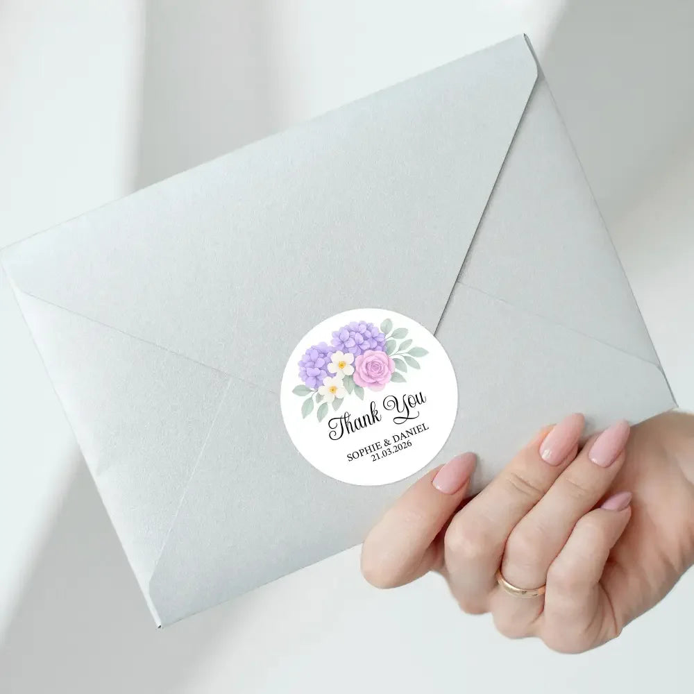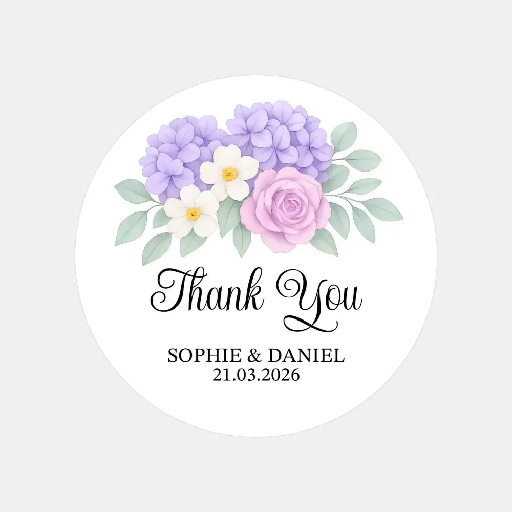 Personalised Wedding Thank You Stickers | Lavender Hydrangea & Lilac Rose Floral Design