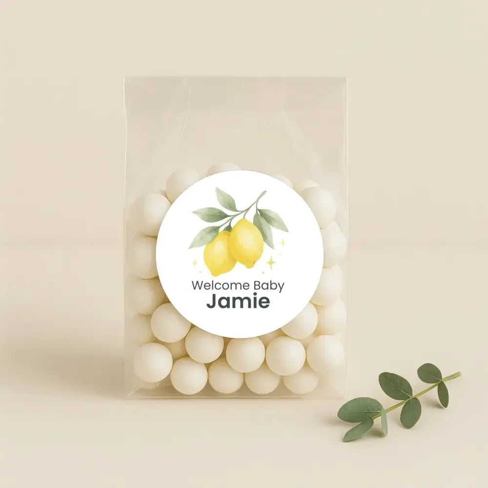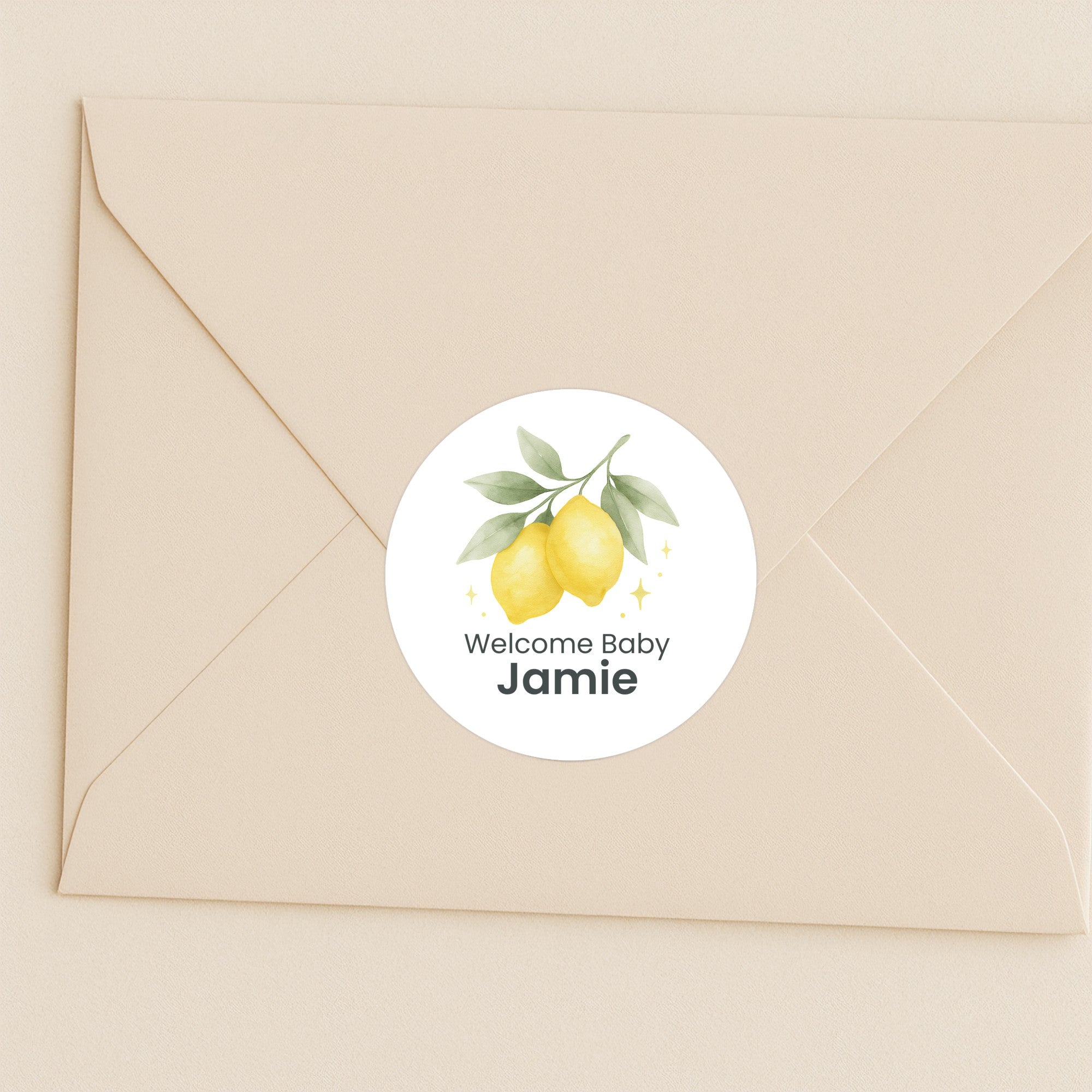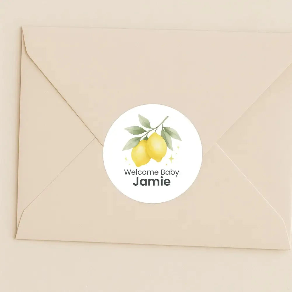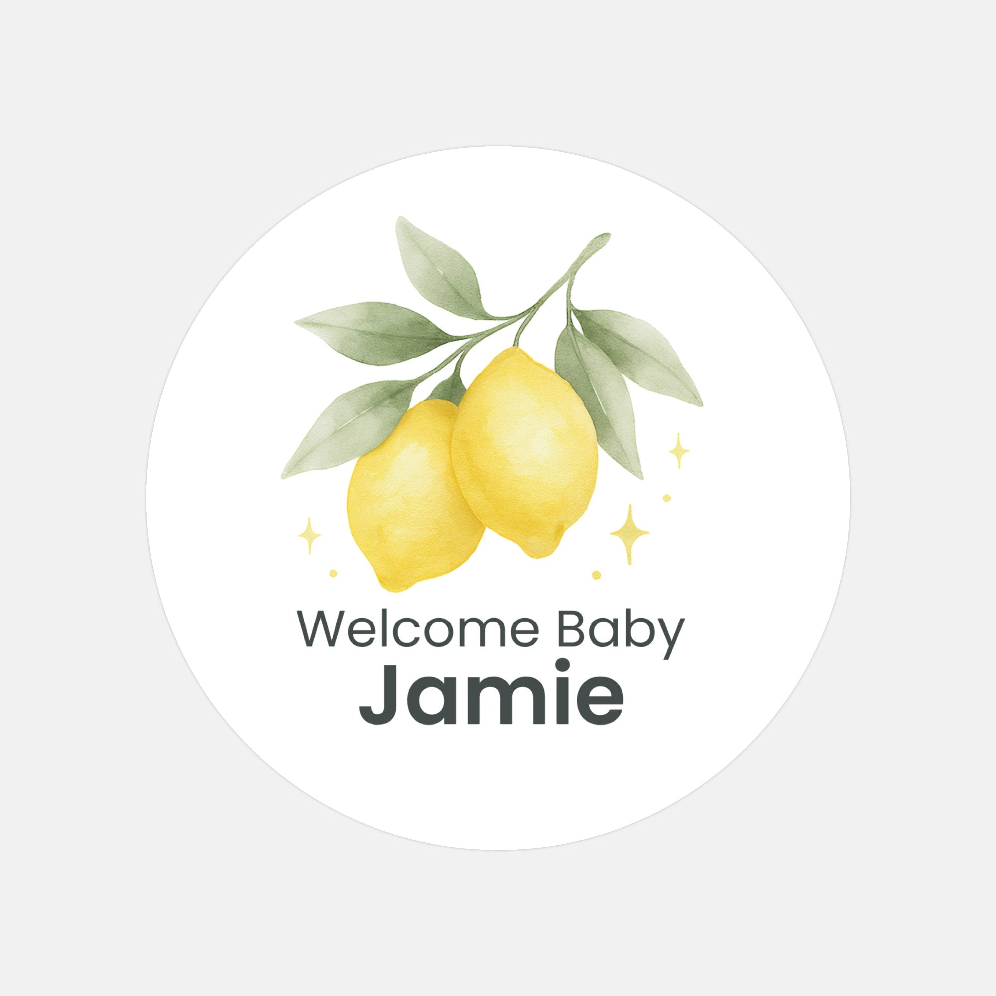 Personalised Welcome Baby Lemon Stickers – Watercolour Citrus Gender-Neutral Favour Labels