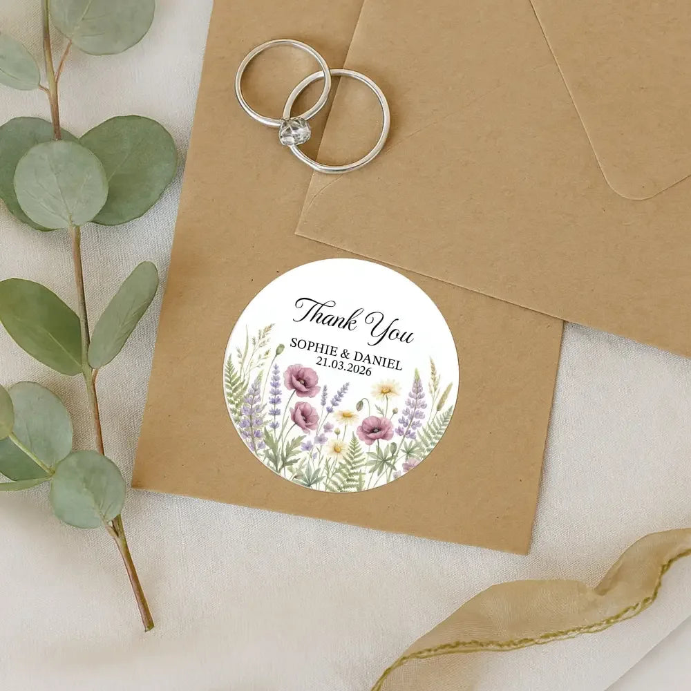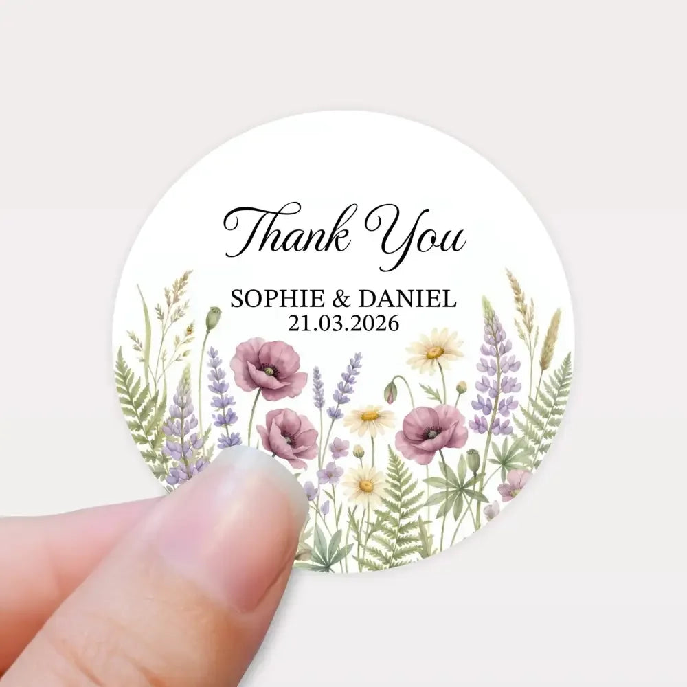 Personalised Wildflower Wedding Thank You Stickers | Rustic Meadow Favour Labels