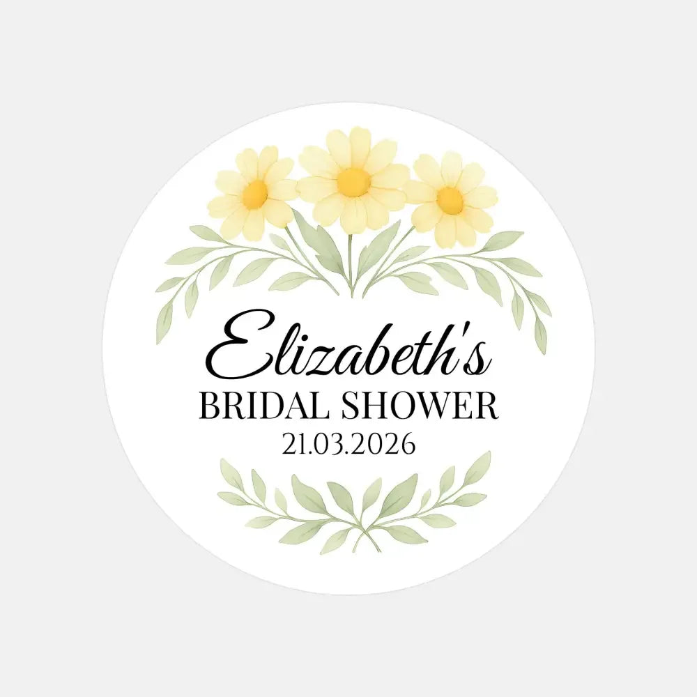 Personalised Yellow Daisy Bridal Shower Stickers – Custom Name & Date – Watercolour Floral Favour Labels