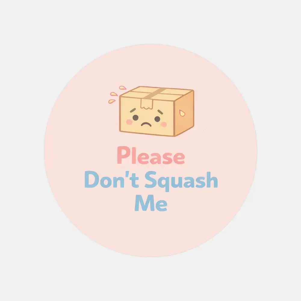 Add a gentle, heartfelt reminder to your parcels with these adorable “Please Don’t Squash Me” round stickers, designed to encourage careful handling while keeping your packaging soft, friendly, and emotionally engaging.
