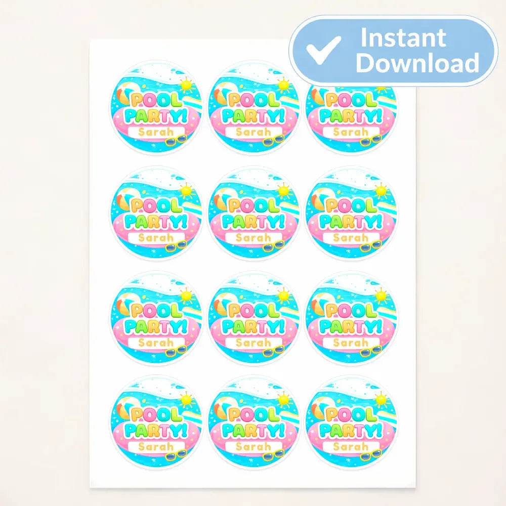 Tip: Pair with matching pool party invitations, thank-you stickers, or favour tags for a coordinated party look! 🏖️