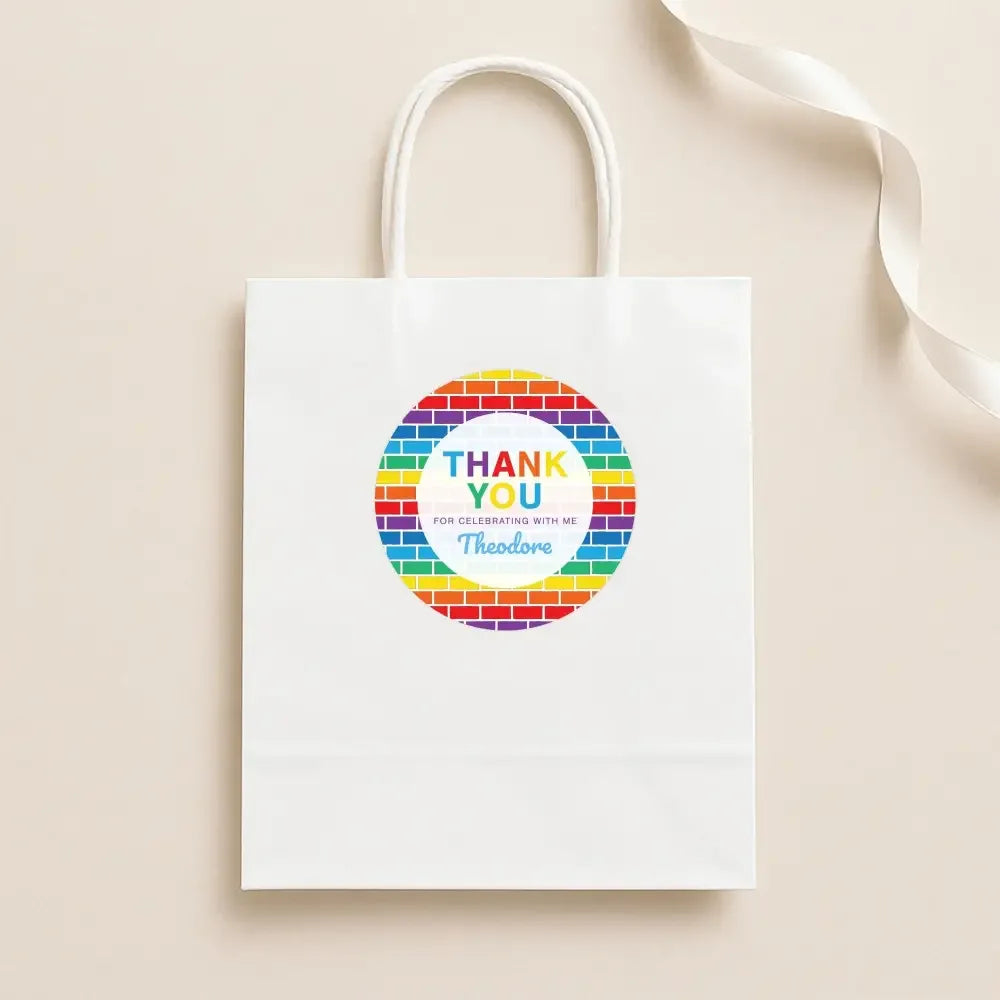 Rainbow Brick Thank You Stickers – Custom Name Kids Birthday Party Favour Labels