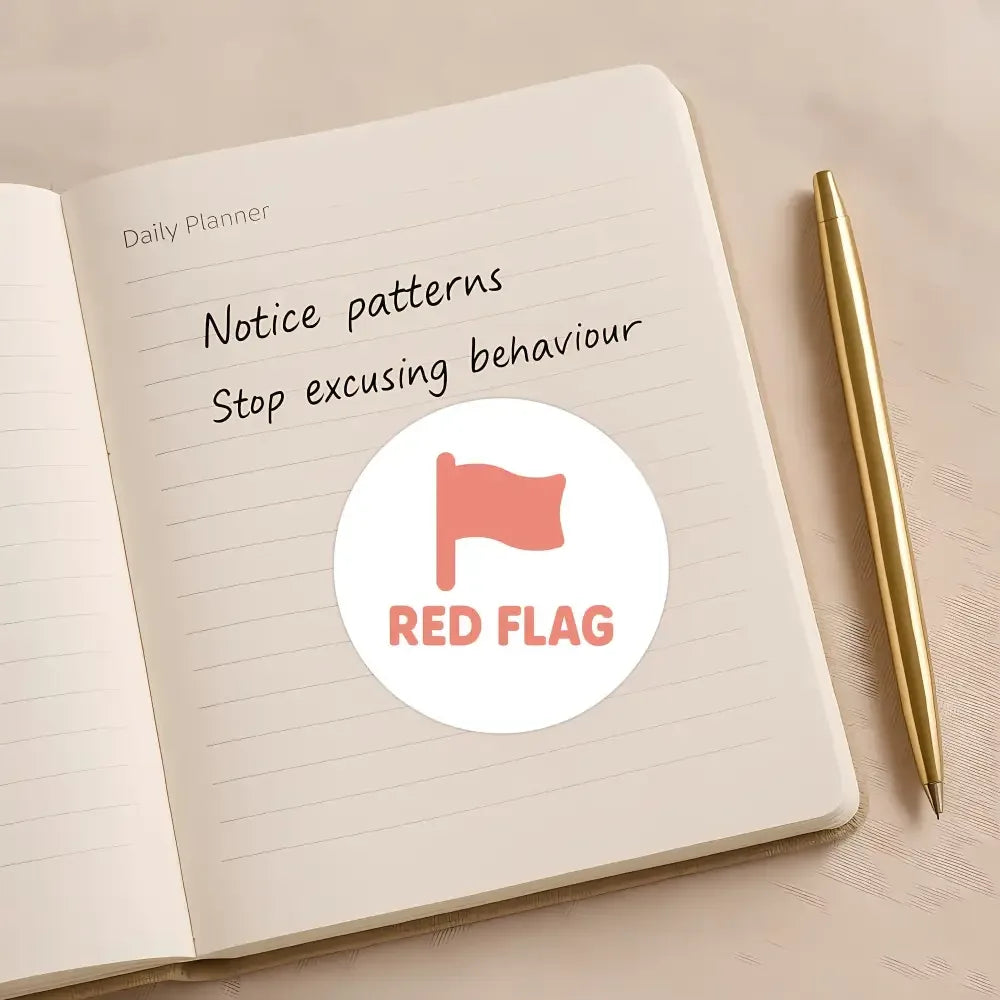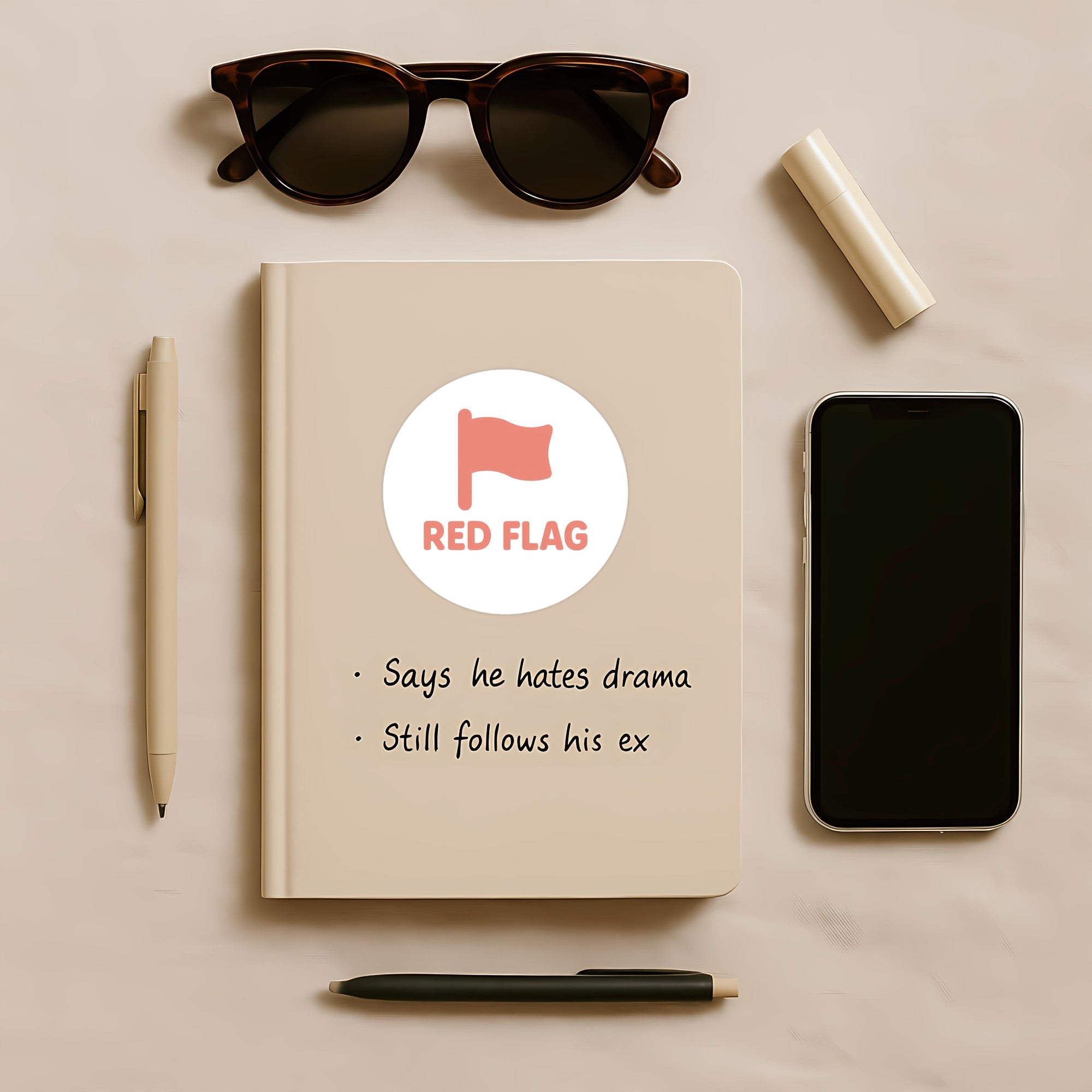 Featuring a single minimalist red flag icon paired with bold “RED FLAG” text, this design strikes the perfect middle ground between subtle and direct. Ideal for journals, planners, notebooks, and everyday moments where the warning sign deserved to be seen.