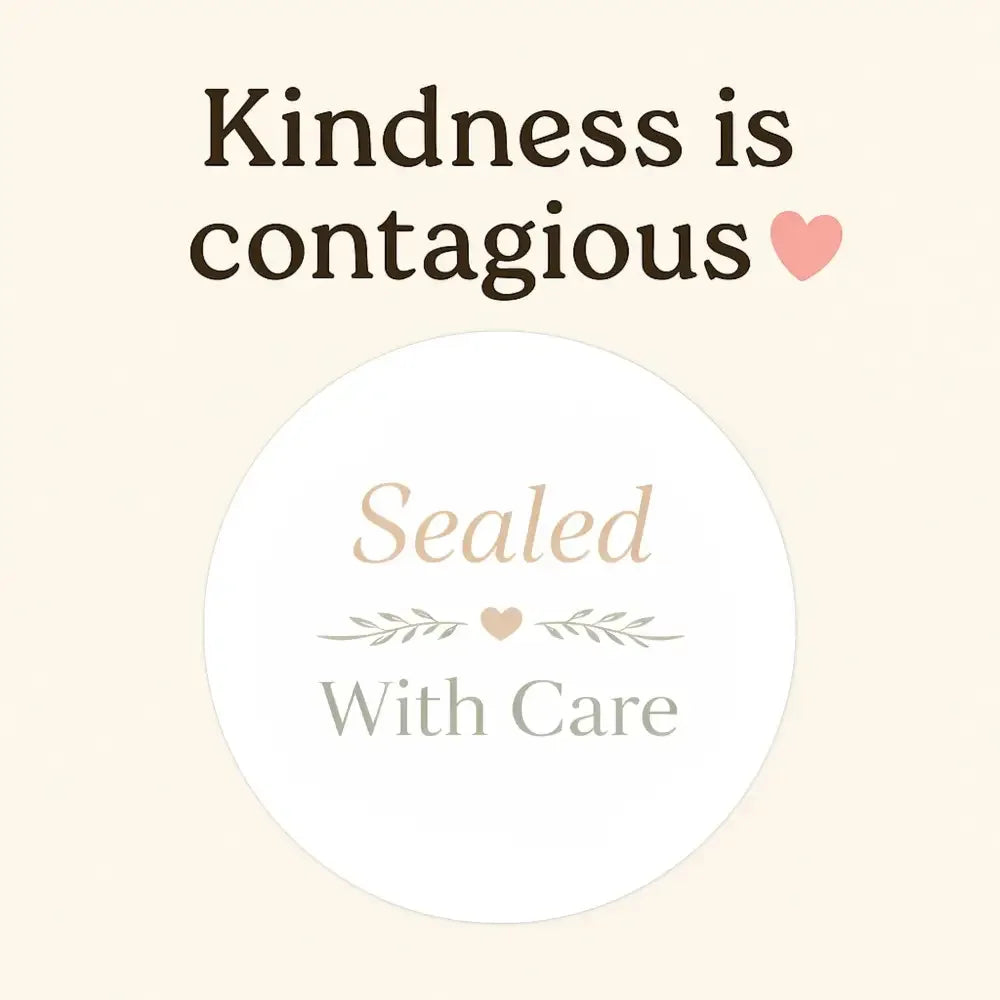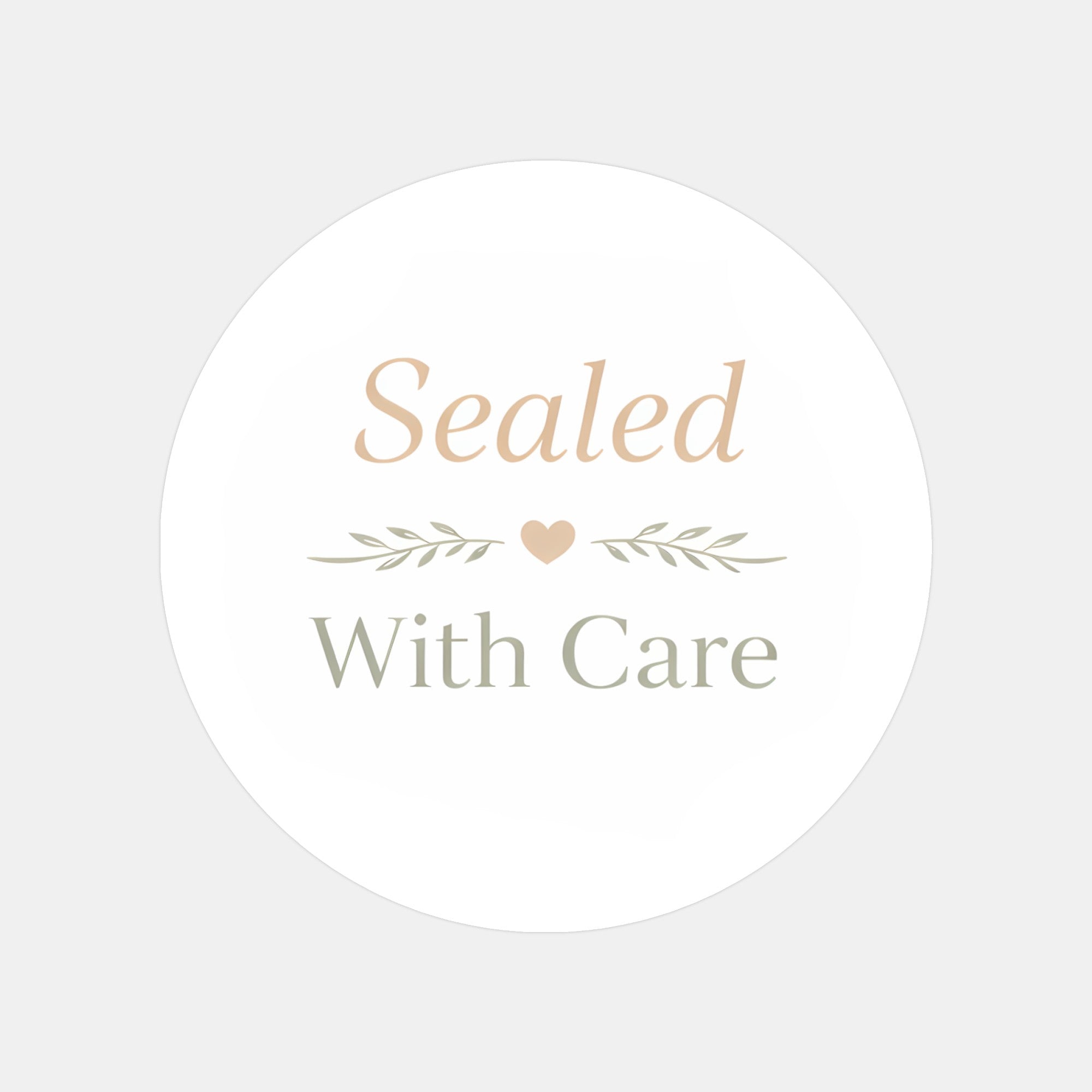 Add a refined finishing touch to your packaging with these elegant “Sealed With Care” round stickers, designed to communicate thoughtfulness, quality, and attention to detail.