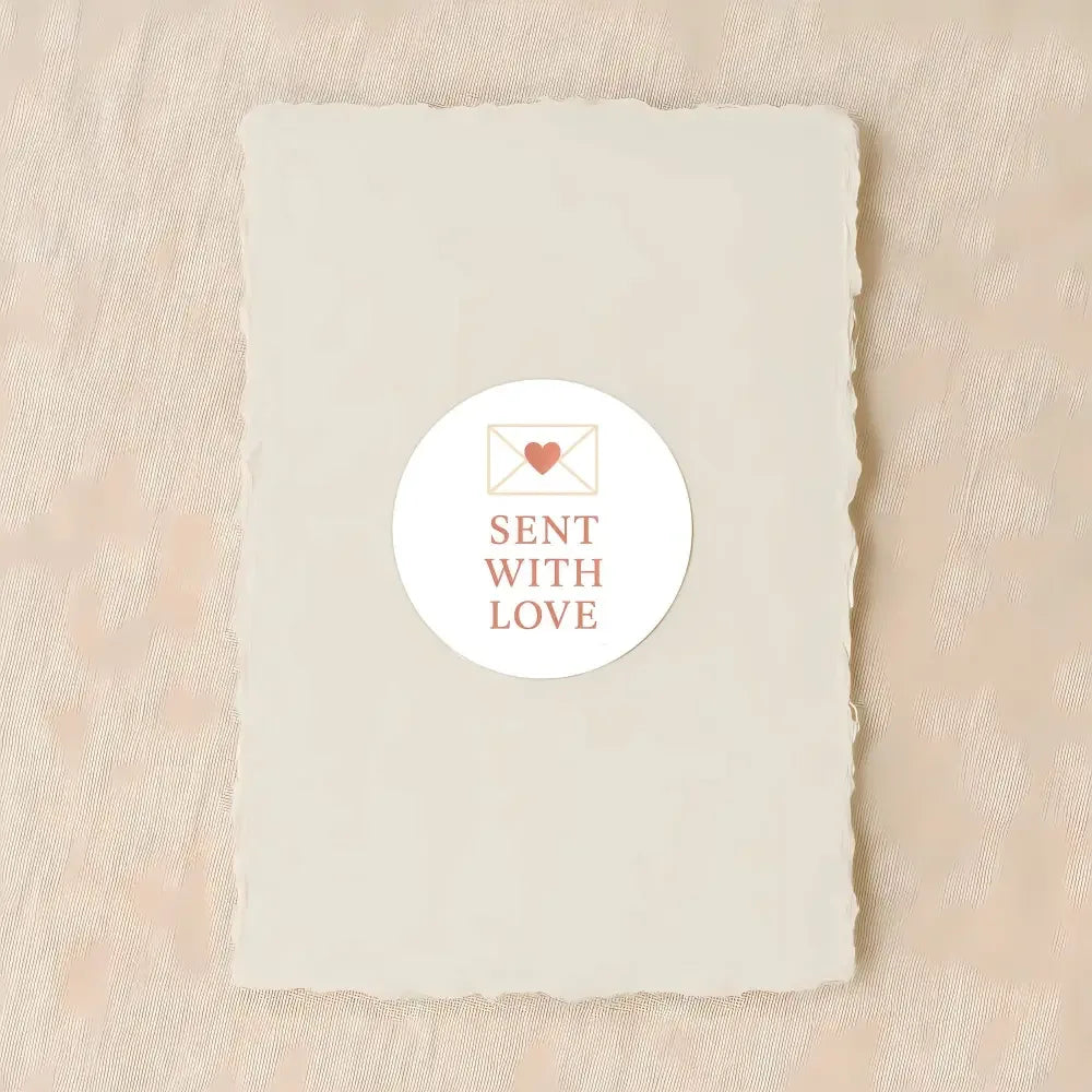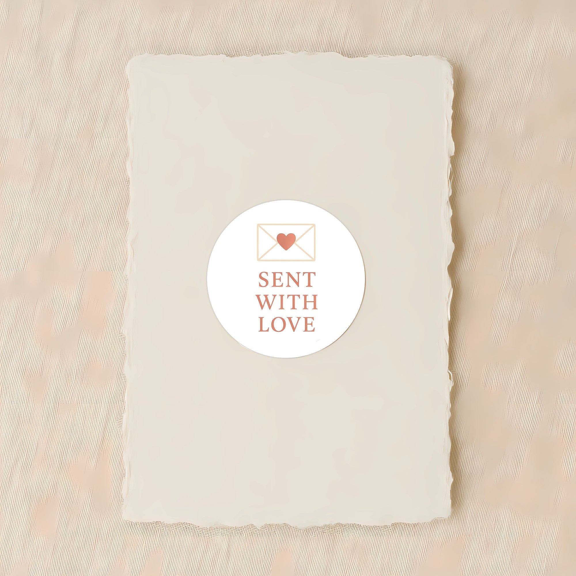 Featuring refined serif typography paired with a delicate envelope illustration and heart detail in warm blush tones, these stickers are ideal for sealing envelopes, cards, parcels and gift wrap with a meaningful, personal feel.