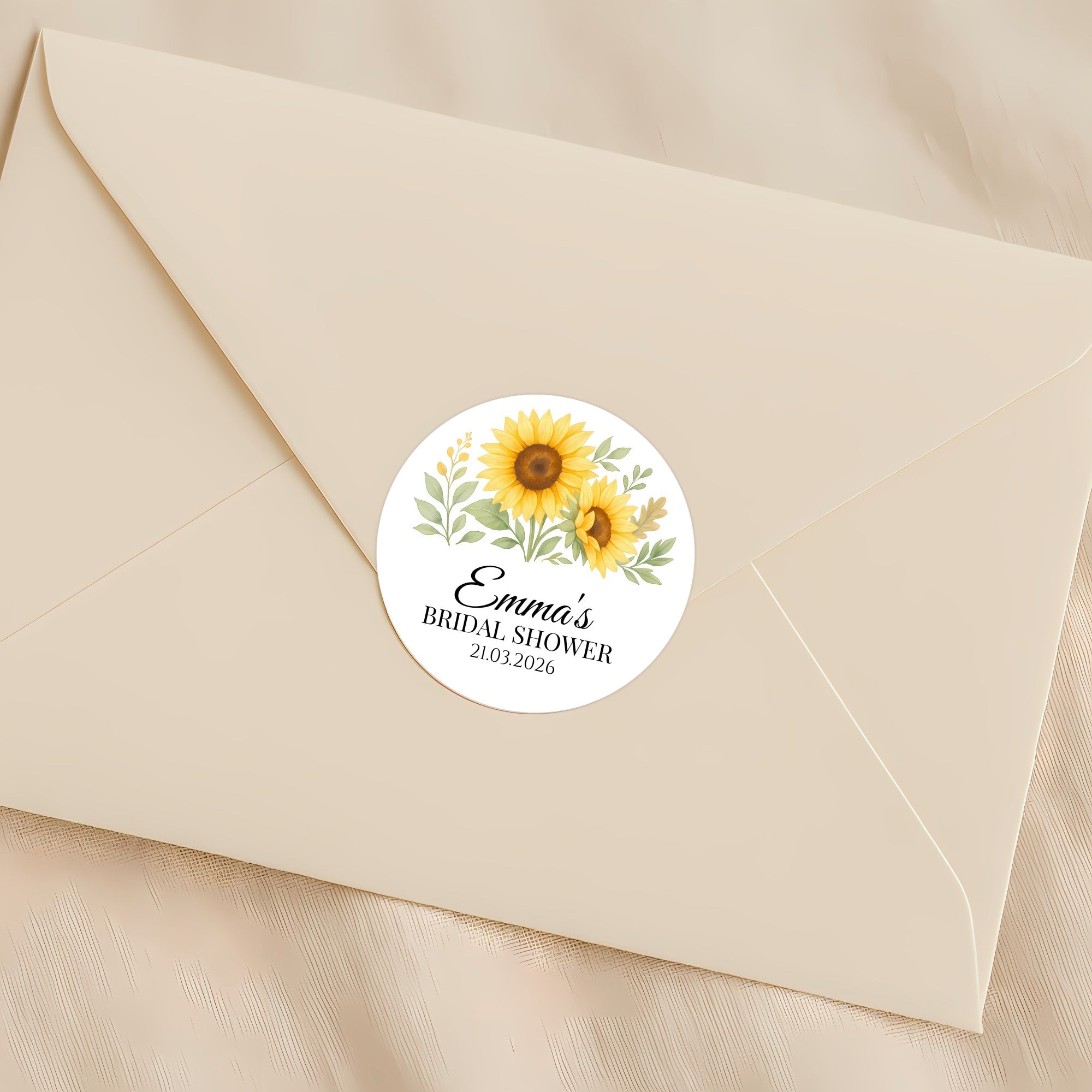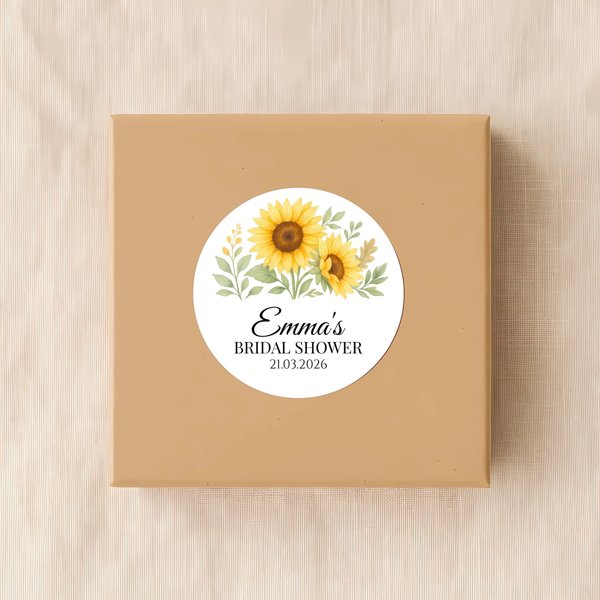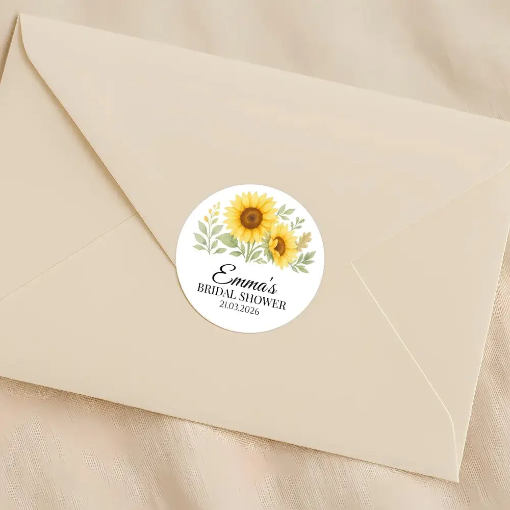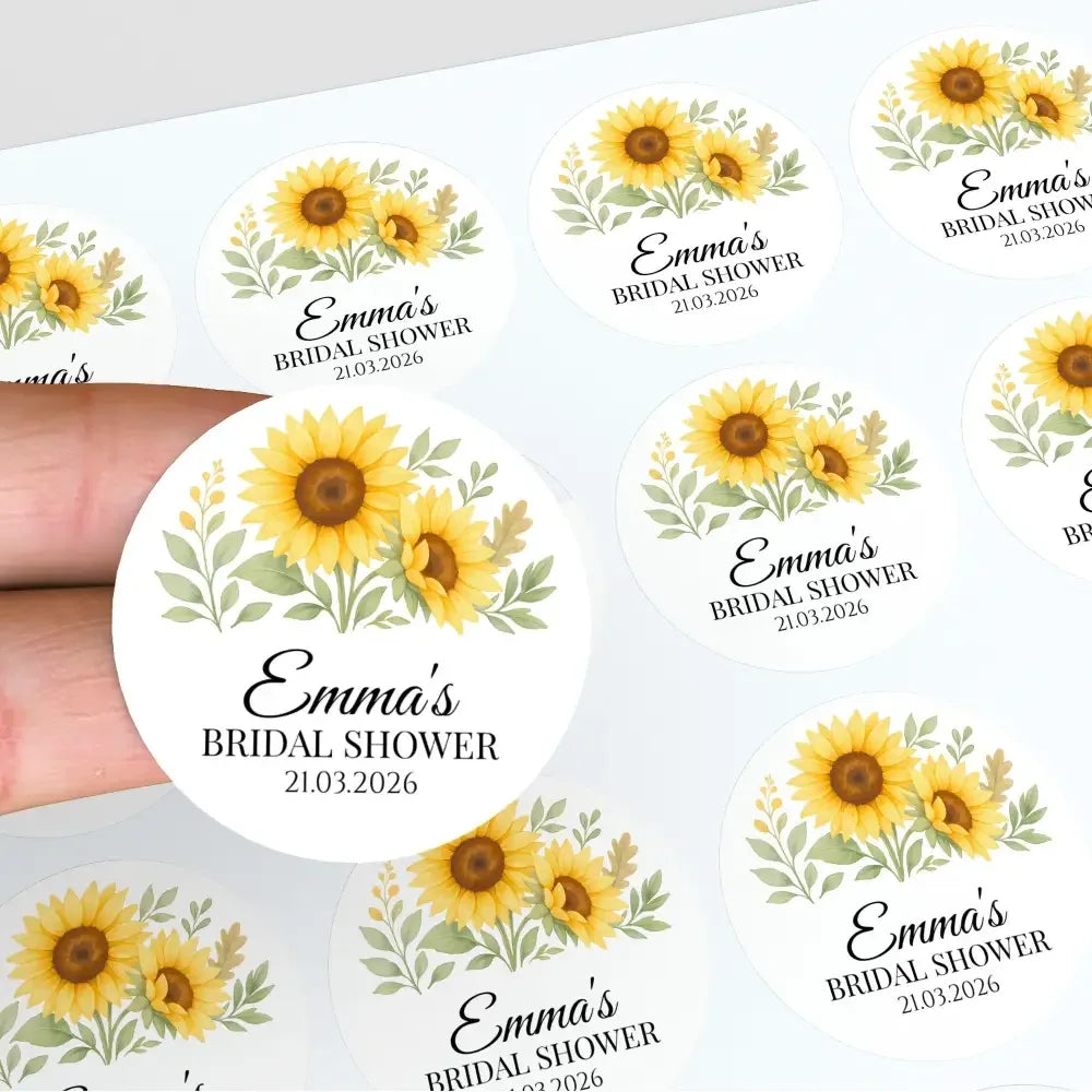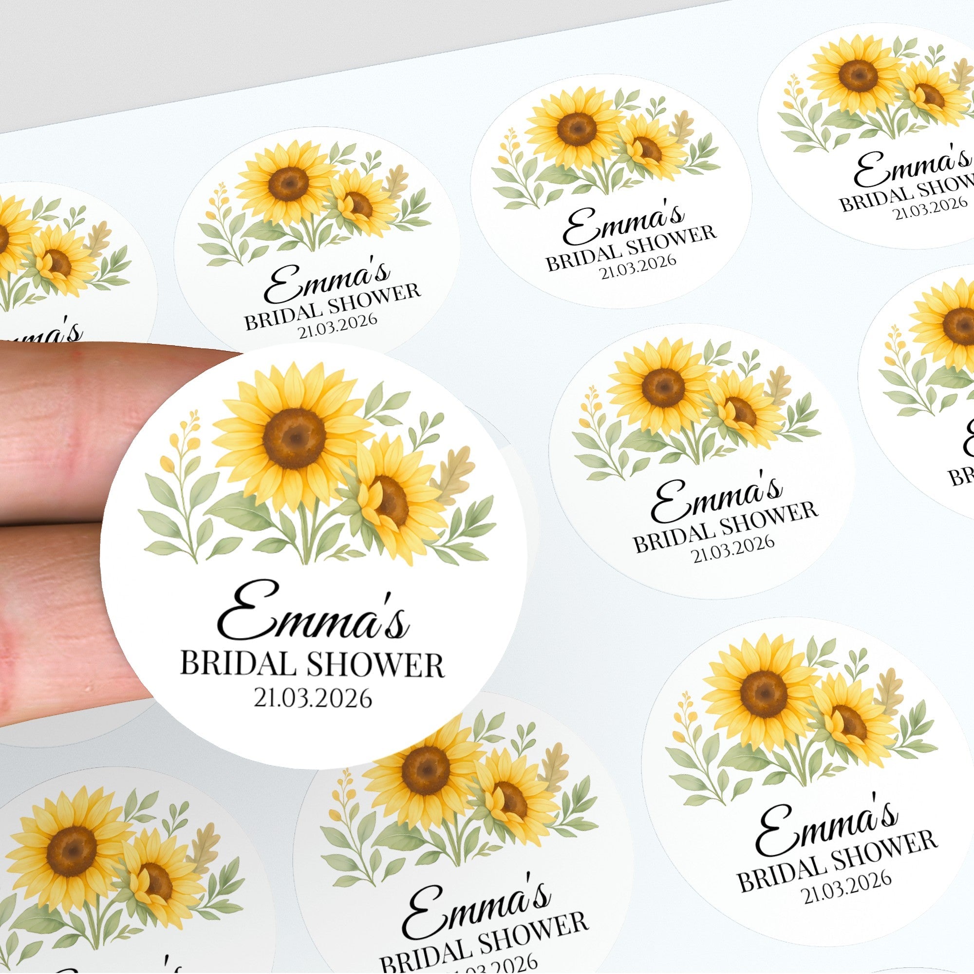 Sunflower Bridal Shower Stickers – Personalised Favour Labels – Custom Name & Date