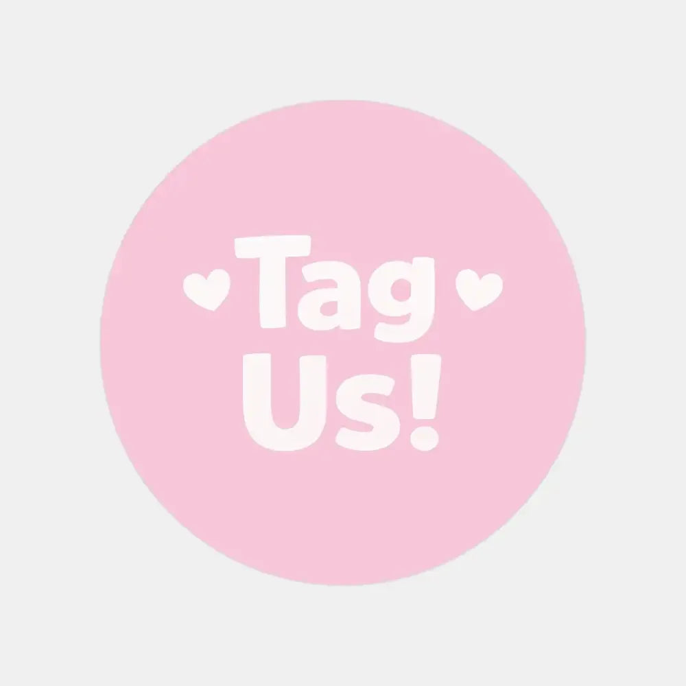 Featuring bold white lettering with heart accents on a soft blush pink background, these stickers add a sweet, eye-catching touch to your packaging while clearly inviting customers to tag you when posting online.